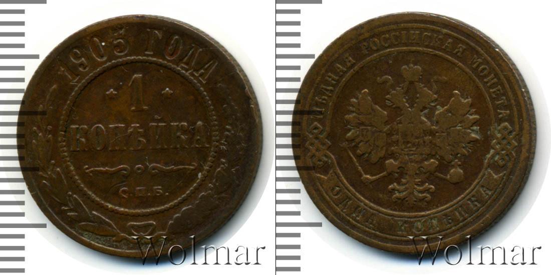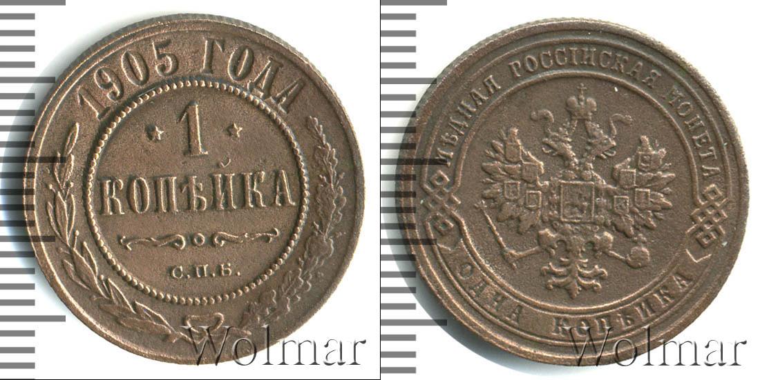 Цена монеты 1 копейка 1905 года в городе Москва на сегодня, 17 января 2026 года