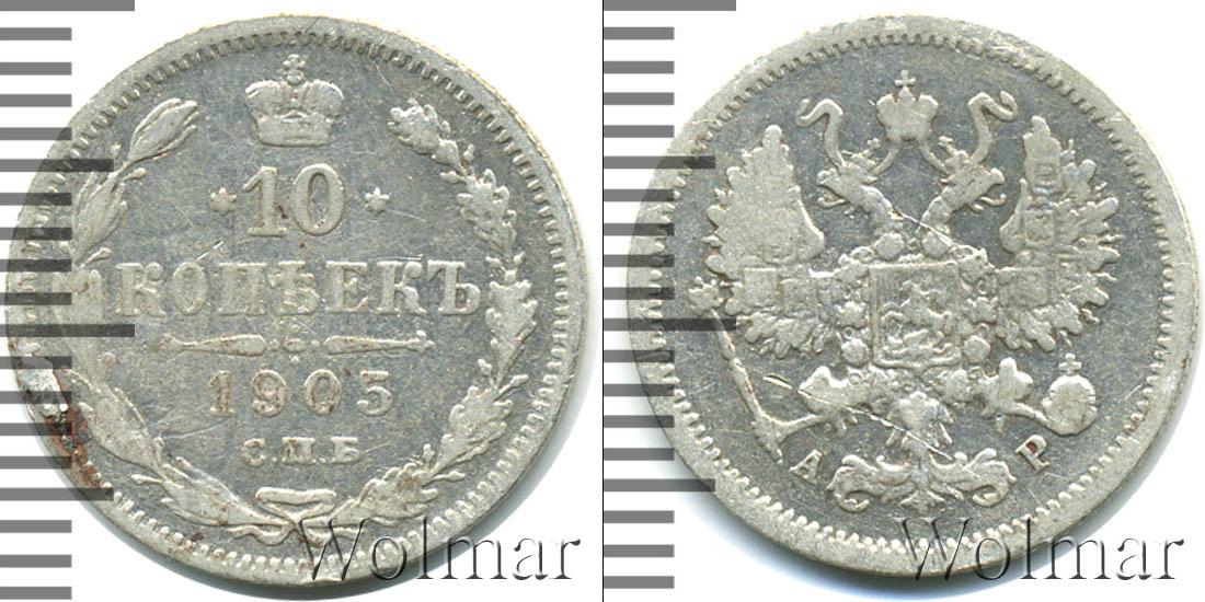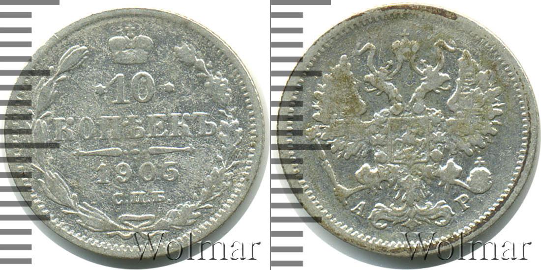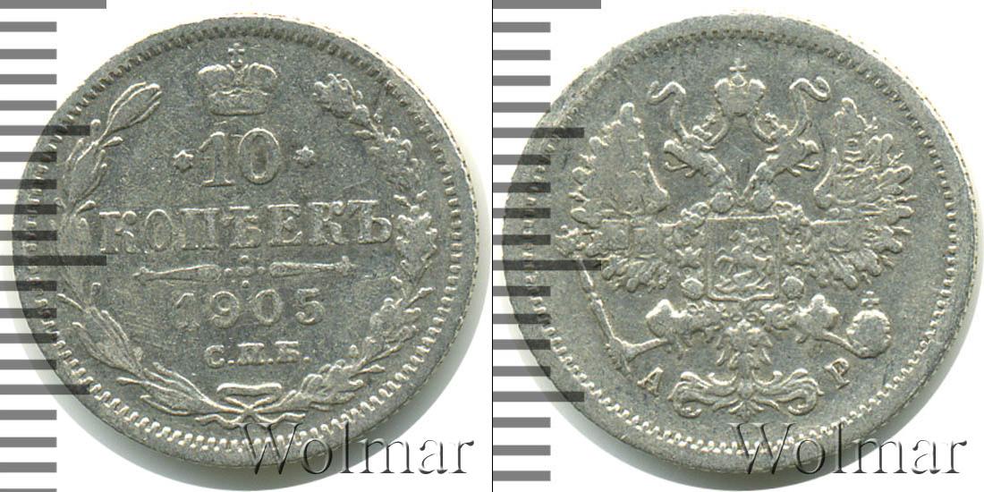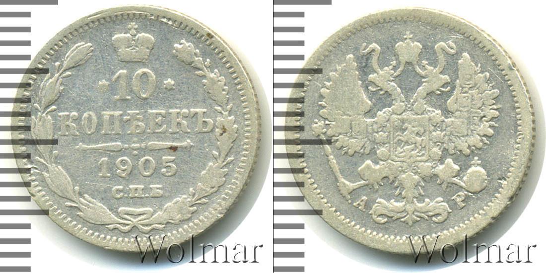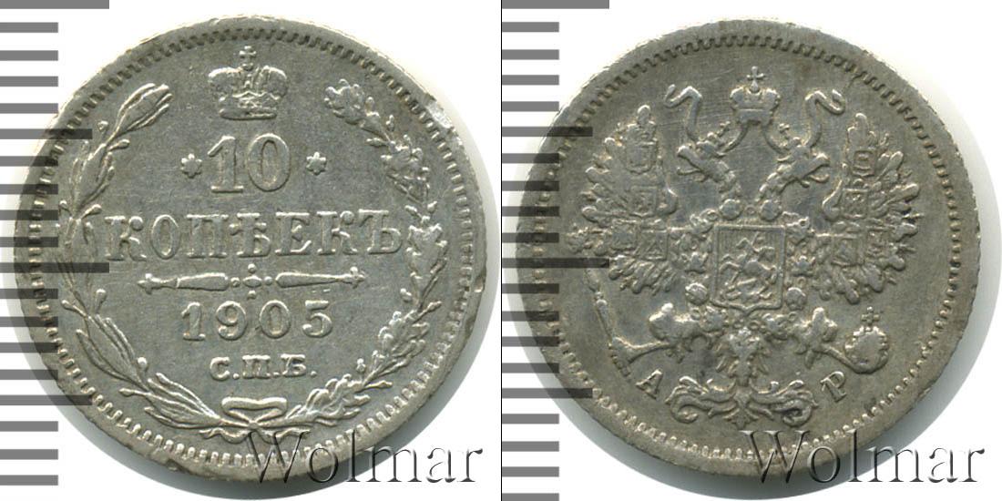 Цена монеты 10 копеек 1905 года в городе Москва на сегодня, 18 декабря 2025 года