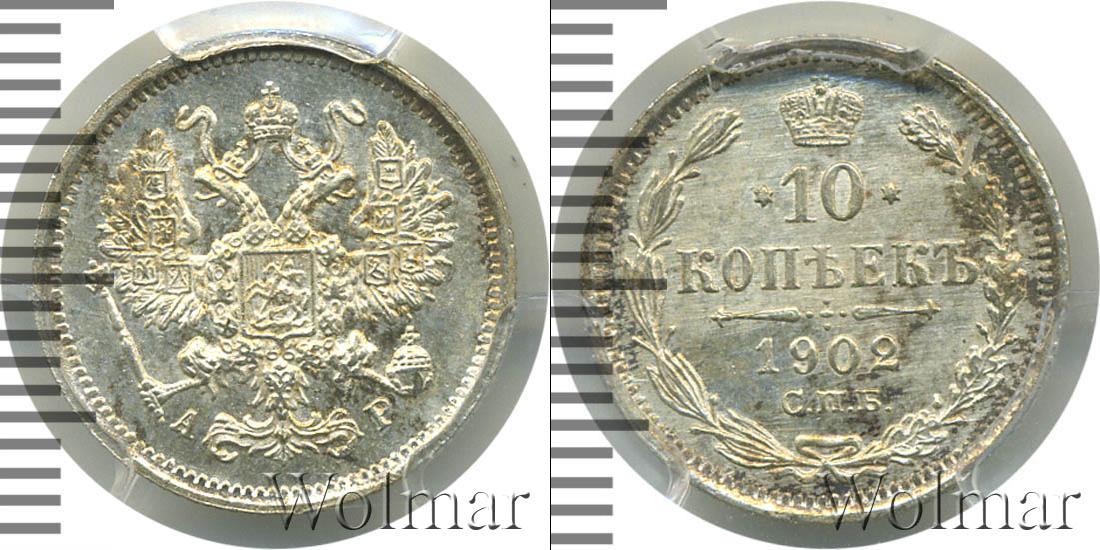 В слабе PCGS. Санкт-Петербургский монетный двор. Биткин №# 941.154, тираж 17 000 009, Уздеников №# 2135, Казаков №# 257, рейтинг 20. По каталогу Wolmar # 139/54. 10 копеек СПБ АР