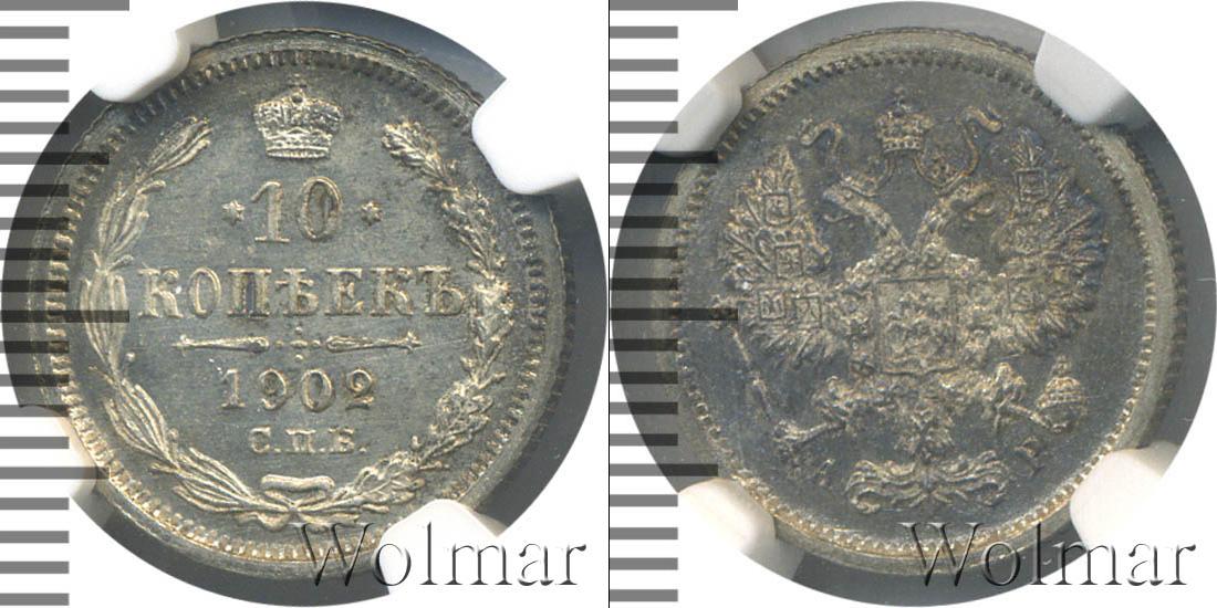 В слабе NGC. Санкт-Петербургский монетный двор. Биткин №# 941.154, тираж 17 000 009, Уздеников №# 2135, Казаков №# 257, рейтинг 20. По каталогу Wolmar # 139/54. 10 копеек СПБ АР