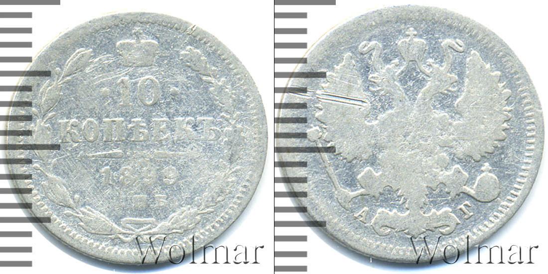 Санкт-Петербургский монетный двор. Биткин №# 941.149, тираж 14 000 022 , Уздеников №# 2108, Казаков №# 182-183, рейтинг 14-15. Wolmar # 139/49. 10 копеек СПБ АГ
