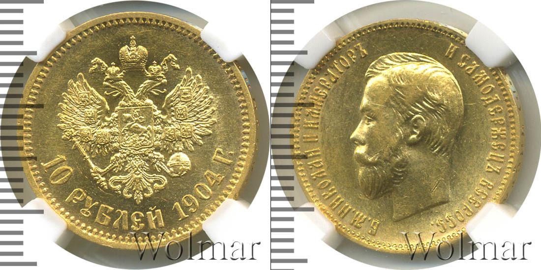 Цена монеты 10 рублей 1904 года в городе Москва на сегодня, 15 марта 2026 года