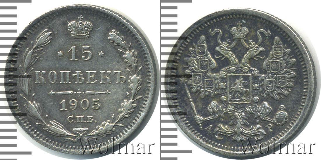 Санкт-Петербургский монетный двор. Биткин №# 940.131, тираж 24 000 000, Уздеников №# 2151. По каталогу Wolmar # 127/53. 15 копеек СПБ АР