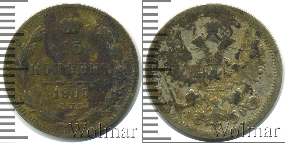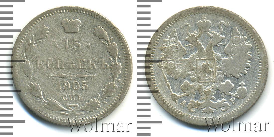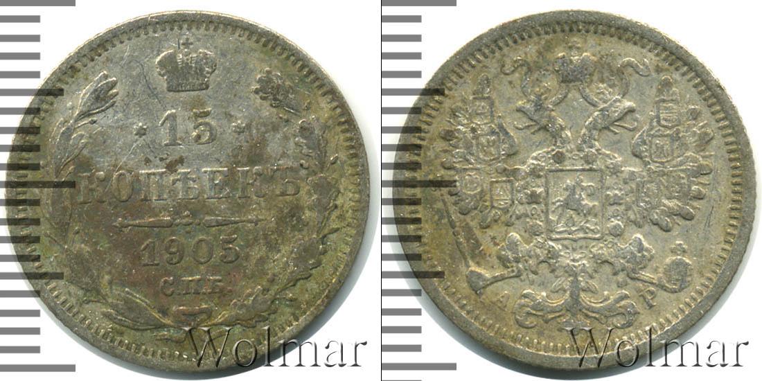 Санкт-Петербургский монетный двор. Биткин №# 940.131, тираж 24 000 000, Уздеников №# 2151. По каталогу Wolmar # 127/53. 15 копеек СПБ АР