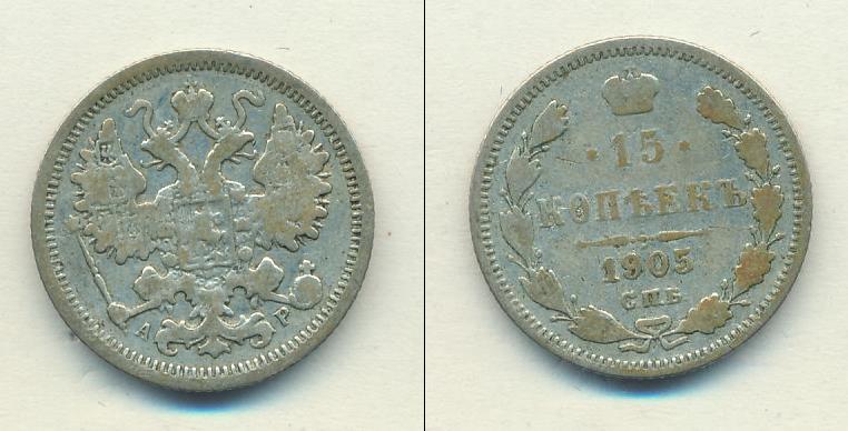 Цена монеты 15 копеек 1905 года в городе Москва на сегодня, 17 декабря 2025 года