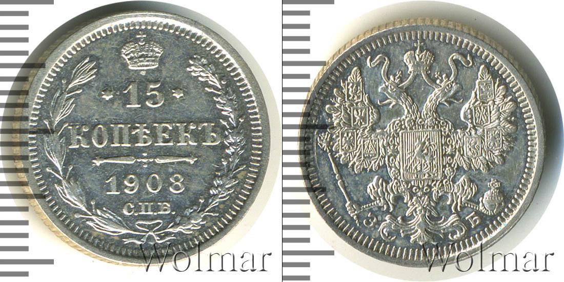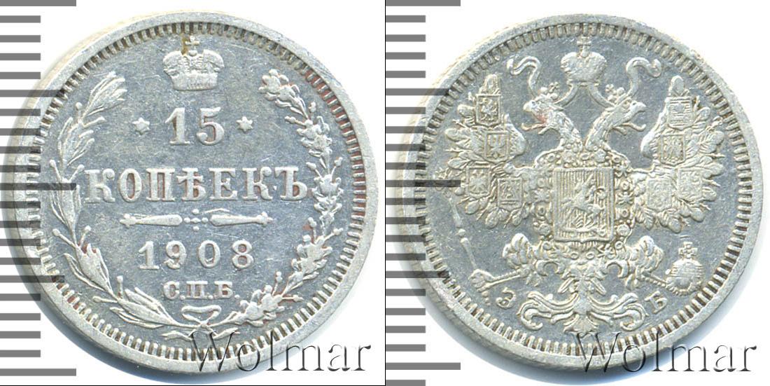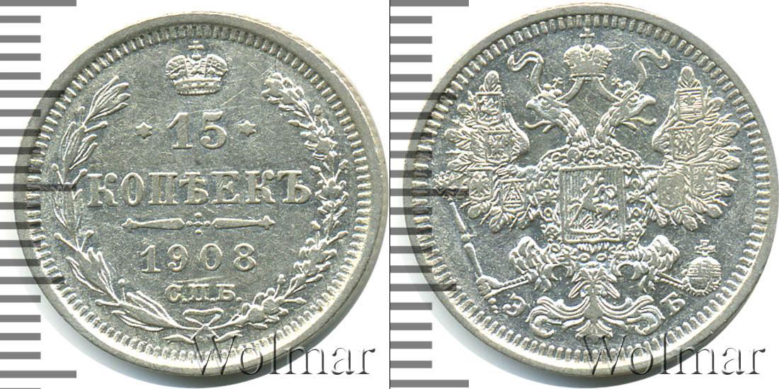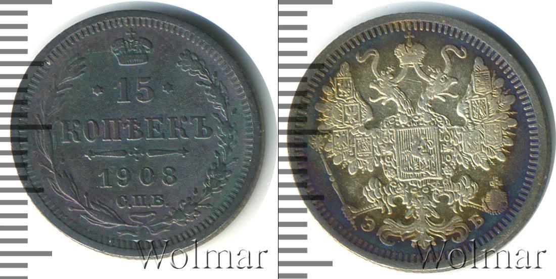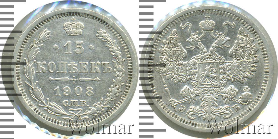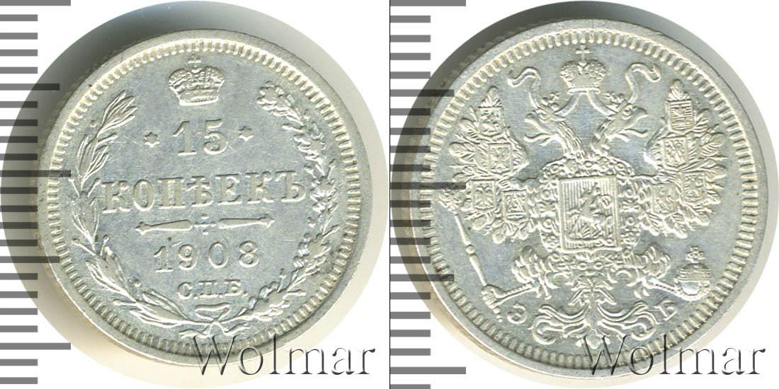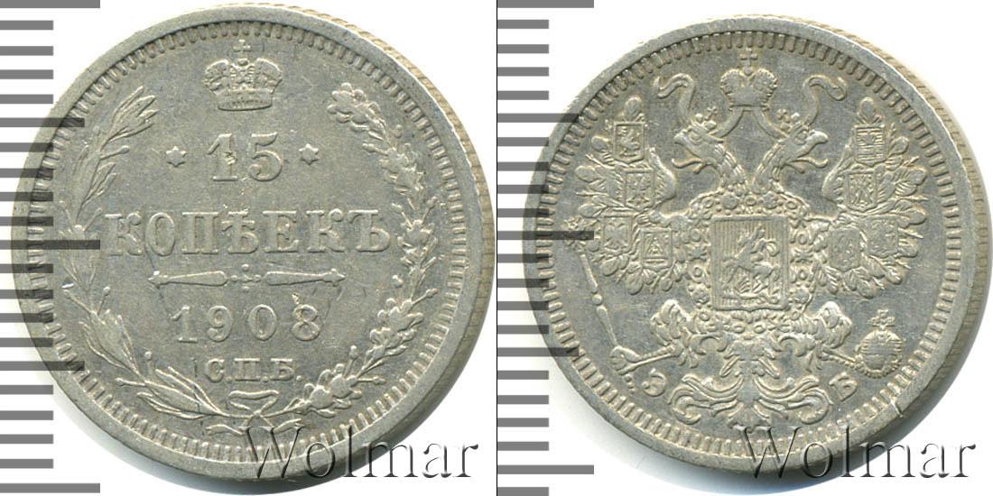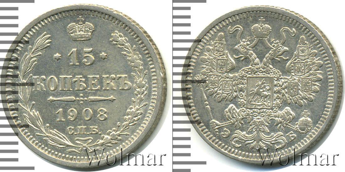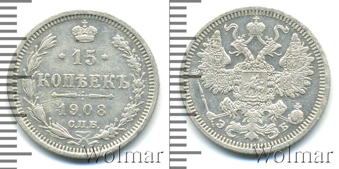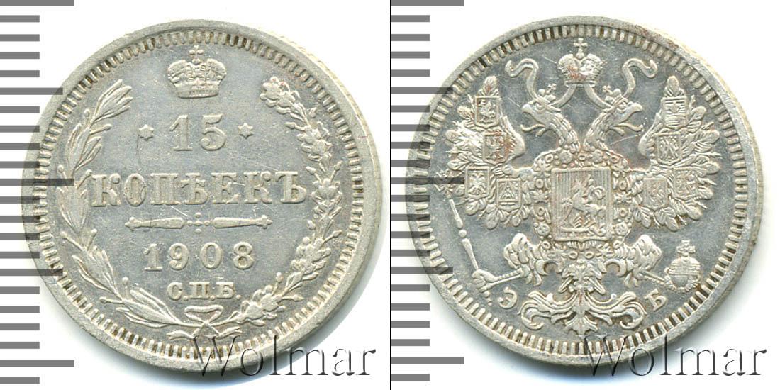 Цена монеты 15 копеек 1908 года в городе Москва на сегодня, 17 марта 2026 года