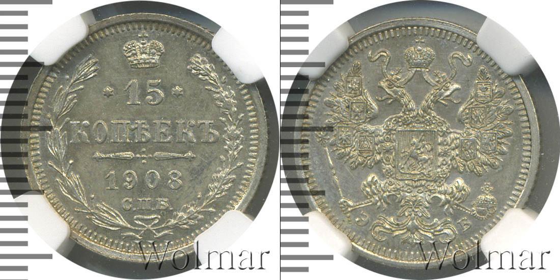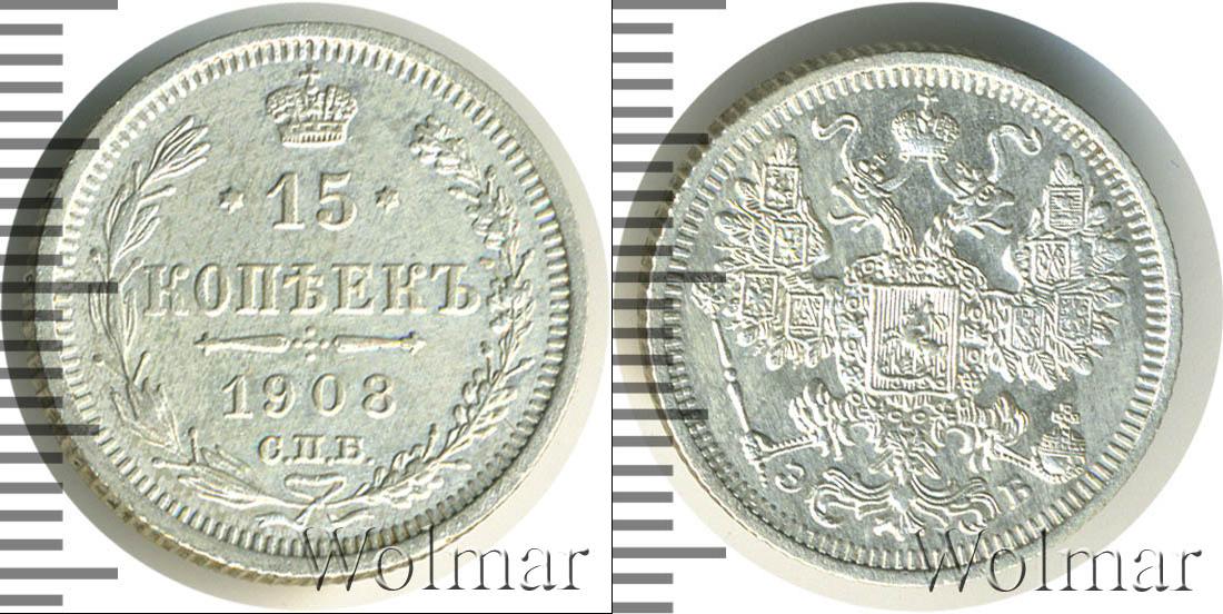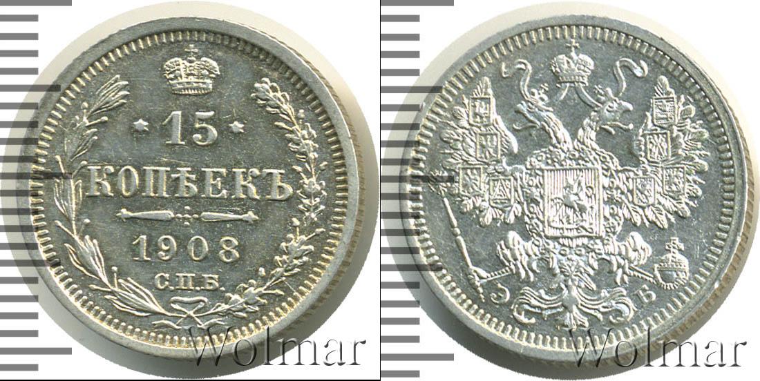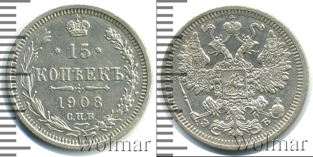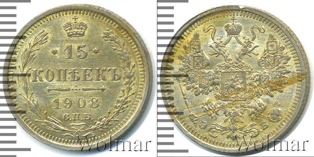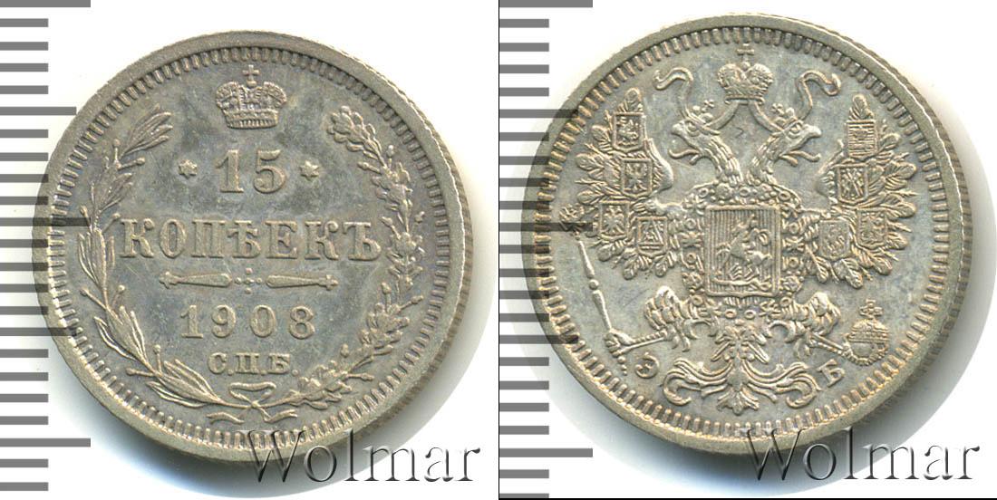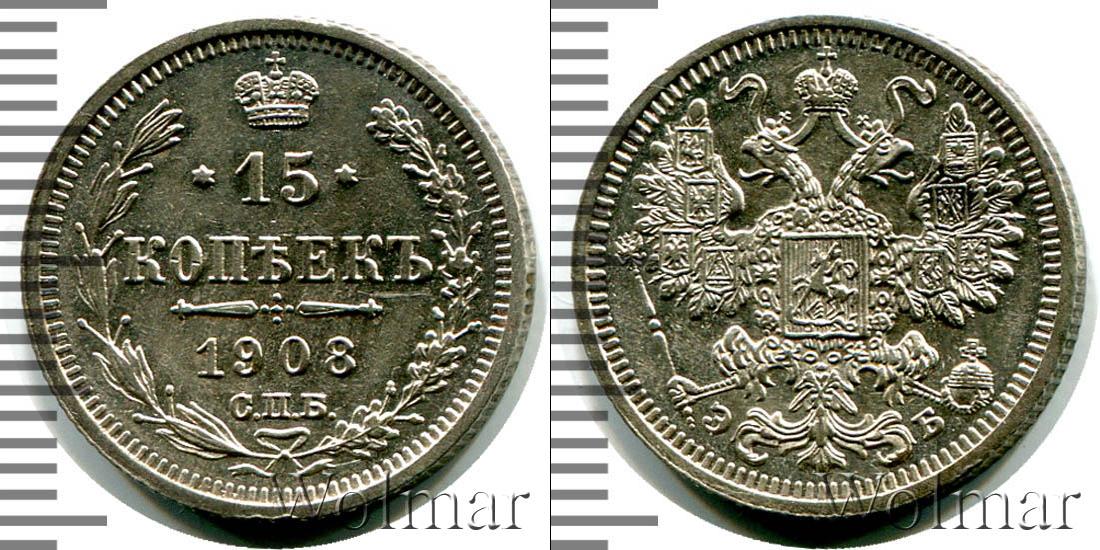 Цена монеты 15 копеек 1908 года в городе Москва на сегодня, 17 марта 2026 года