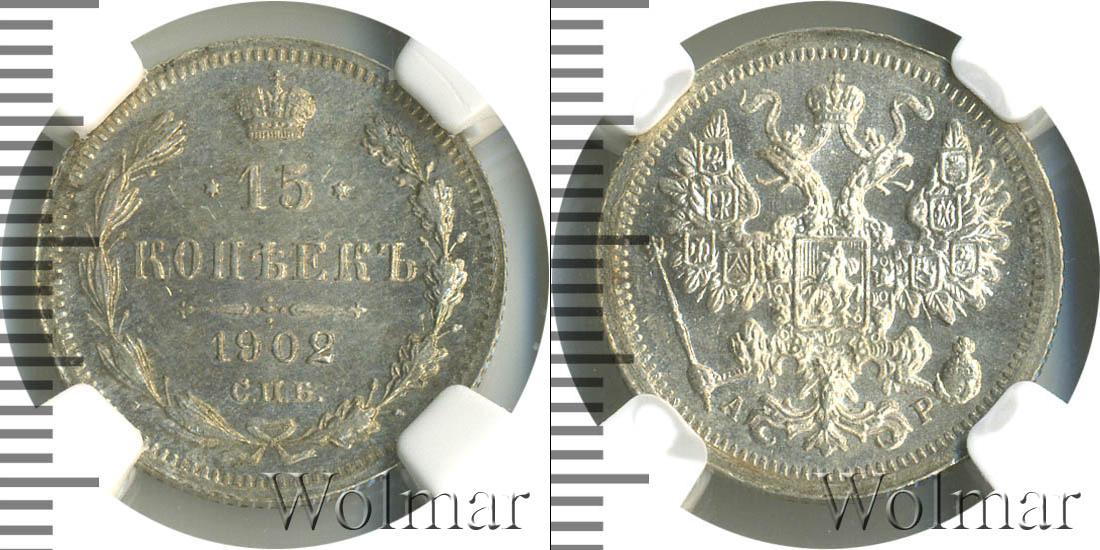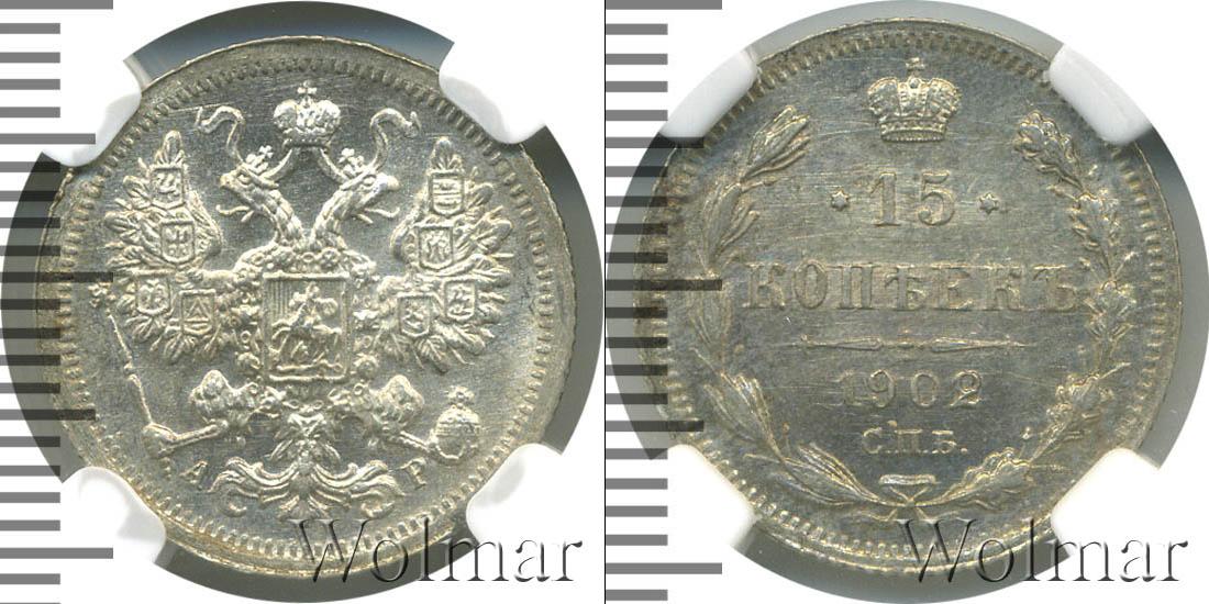 В слабе NGC. Санкт-Петербургский монетный двор. Биткин №# 940.128, тираж 28 666 673, Уздеников №# 2134. По каталогу Wolmar # 127/50. 15 копеек СПБ АР