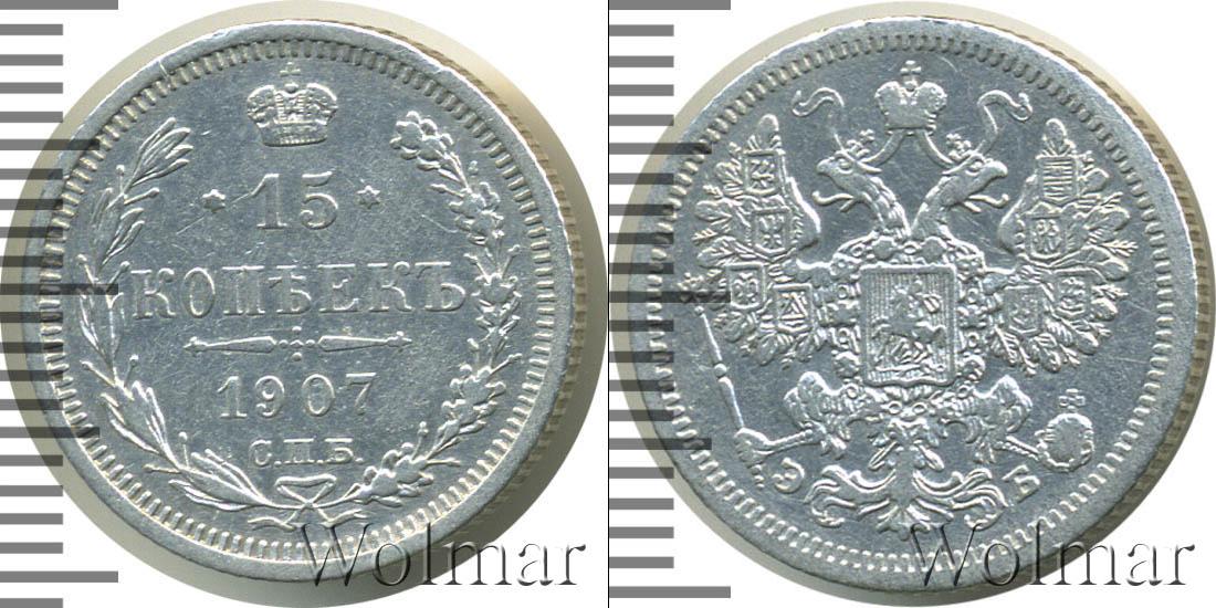Цена монеты 15 копеек 1907 года в городе Москва на сегодня, 17 марта 2026 года