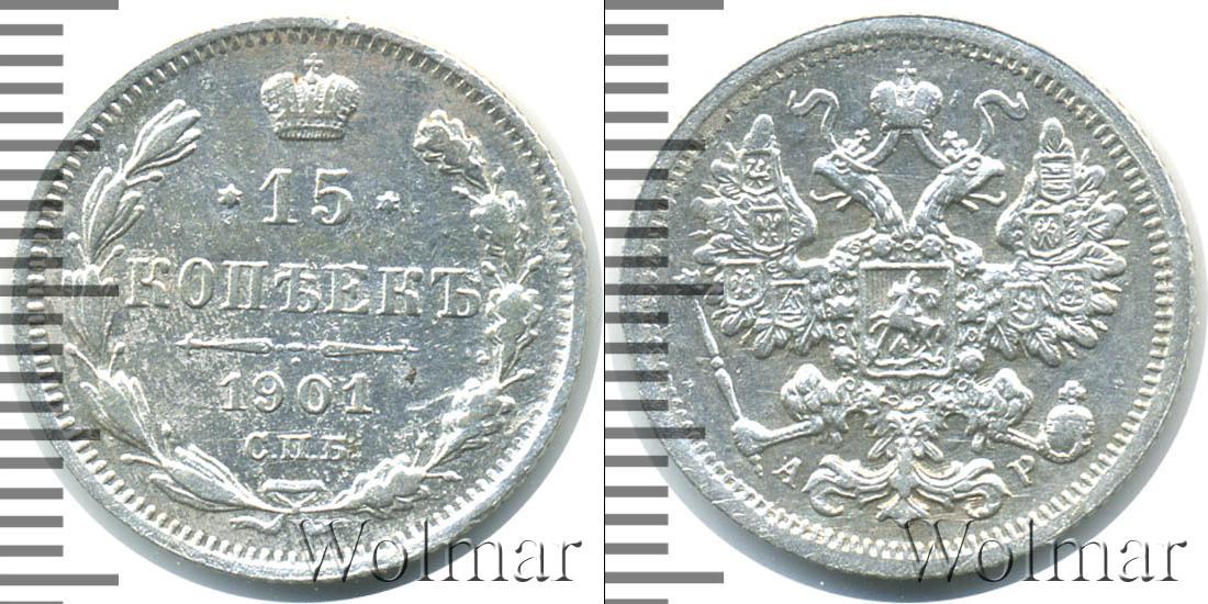 Редкие. Санкт-Петербургский монетный двор. Биткин №# 940.127, тираж 6 670 020, Уздеников №# 2126, Казаков №# 235-236, рейтинг 8-9. Wolmar # 127/49. 15 копеек СПБ АР