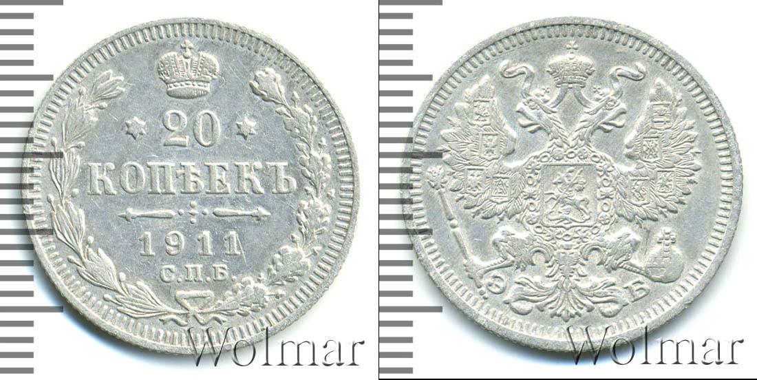 Цена монеты 20 копеек 1911 года в городе Москва на сегодня, 23 октября 2025 года