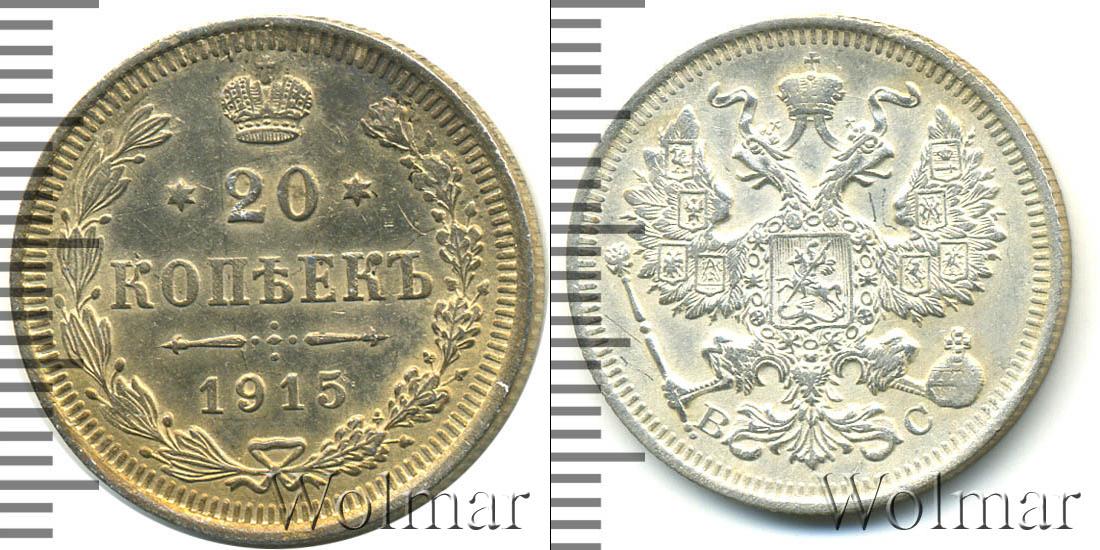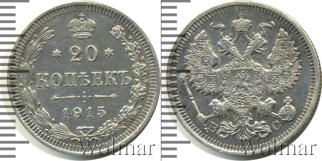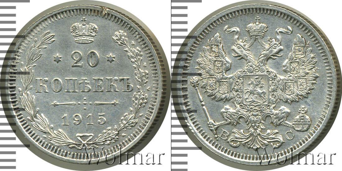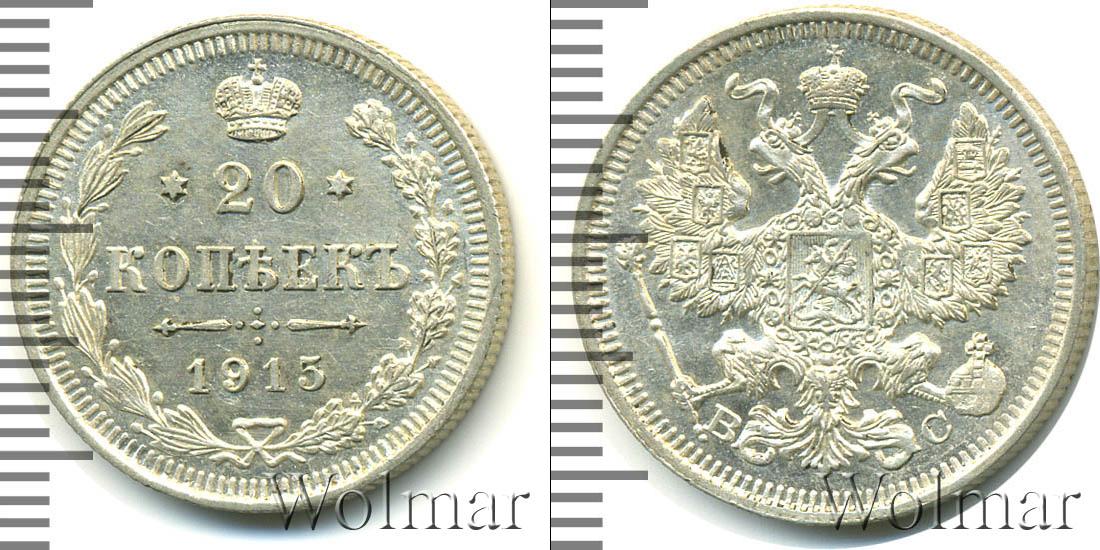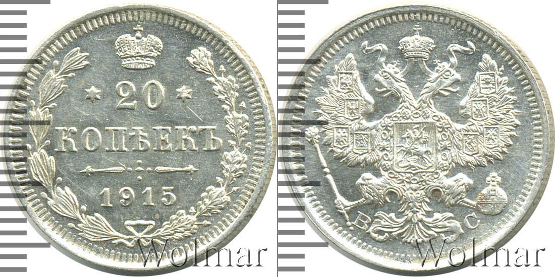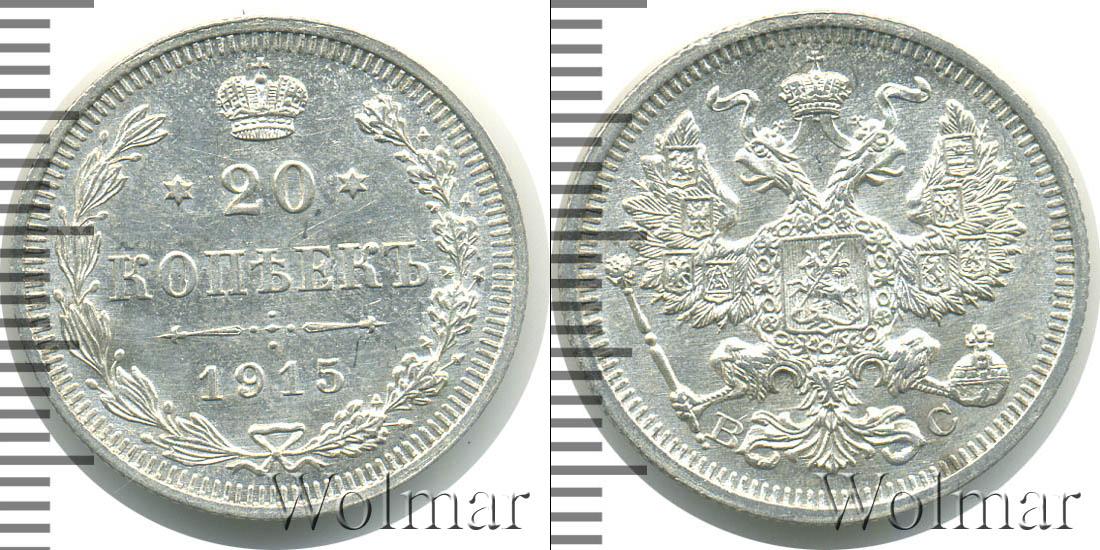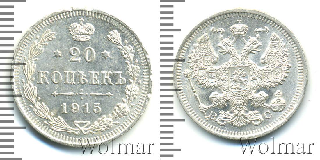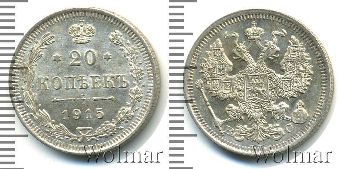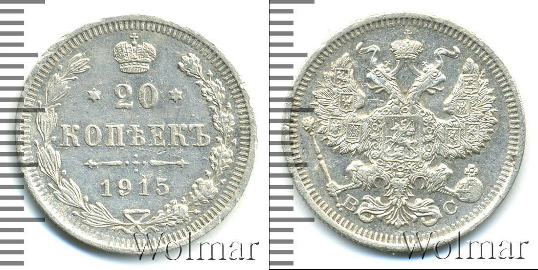 Цена монеты 20 копеек 1915 года в городе Москва на сегодня, 14 марта 2026 года