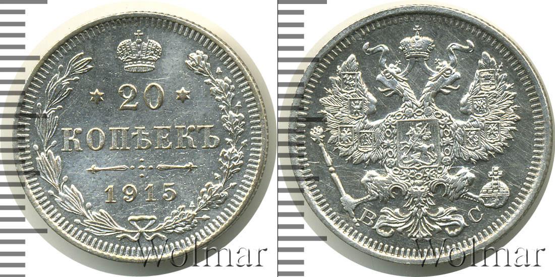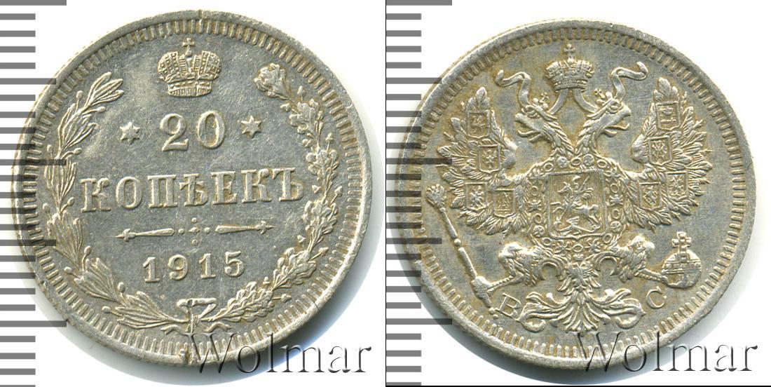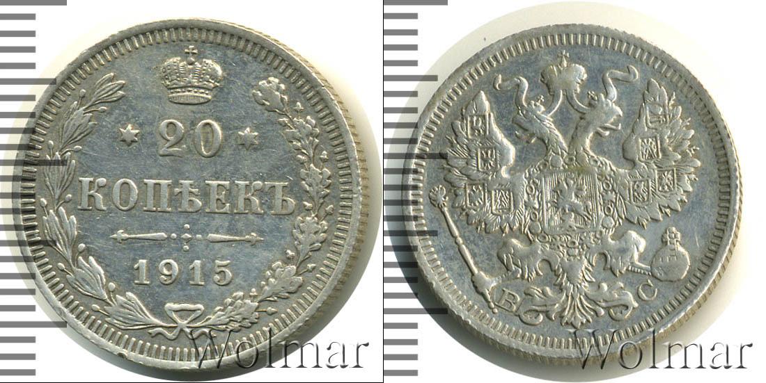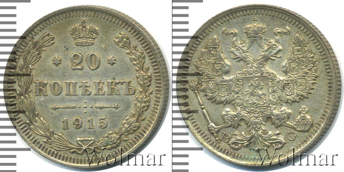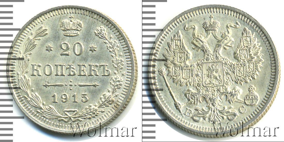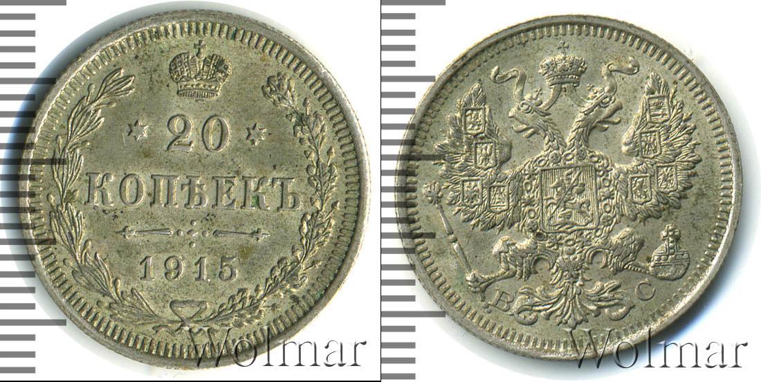 Цена монеты 20 копеек 1915 года в городе Москва на сегодня, 14 марта 2026 года