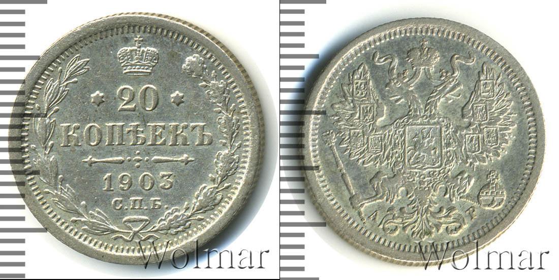 Цена монеты 20 копеек 1903 года в городе Москва на сегодня, 14 марта 2026 года