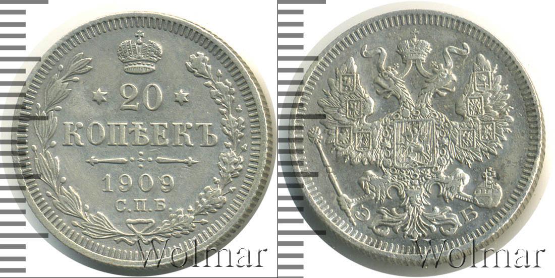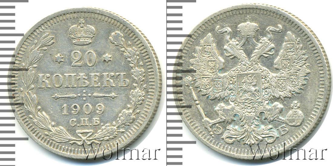 Цена монеты 20 копеек 1909 года в городе Москва на сегодня, 23 октября 2025 года