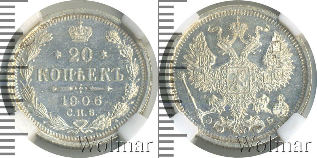 В слабе PCGS. Санкт-Петербургский монетный двор. Биткин №# 939.106, тираж ?, Уздеников №# 2156, Казаков №# 312, тираж 15 000 010, рейтинг 14. По каталогу Wolmar # 124/56. 20 копеек СПБ ЭБ