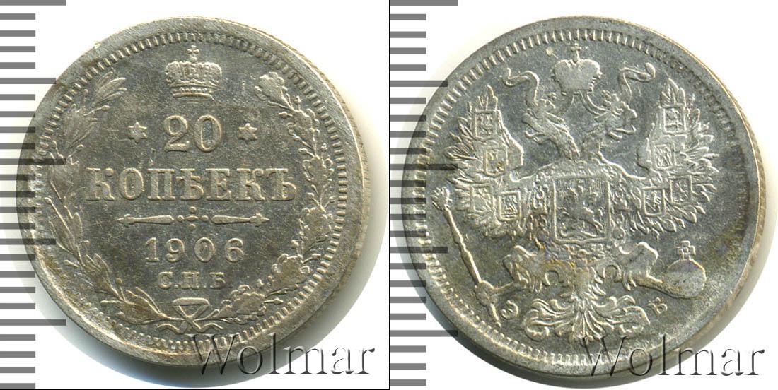 Царапины. Санкт-Петербургский монетный двор. Биткин №# 939.106, тираж ?, Уздеников №# 2156, Казаков №# 312, тираж 15 000 010, рейтинг 14. По каталогу Wolmar # 124/56. 20 копеек СПБ ЭБ