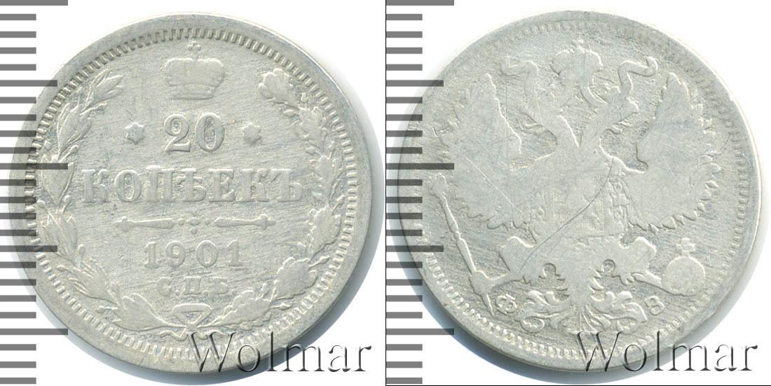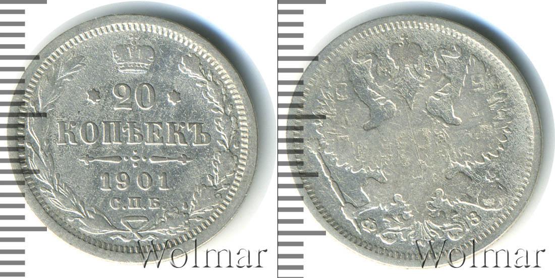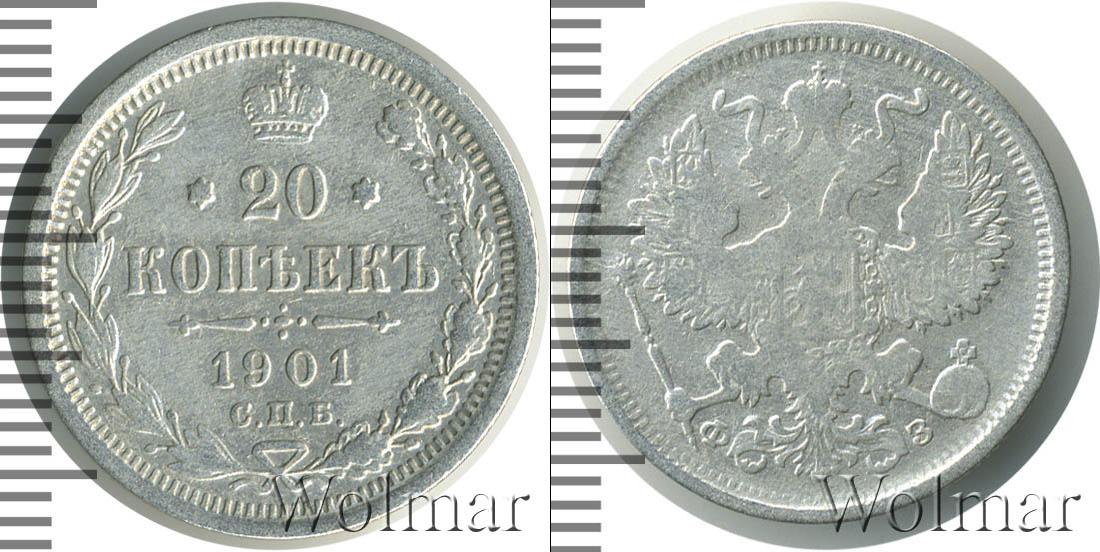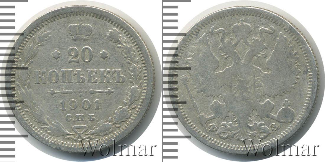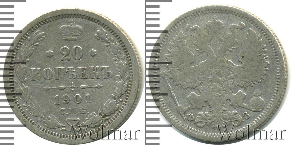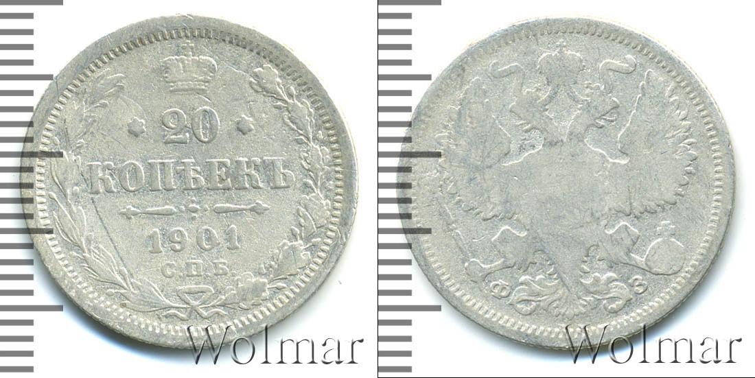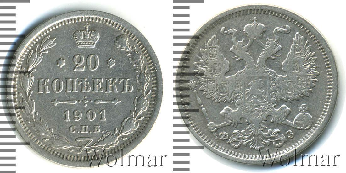 Цена монеты 20 копеек 1901 года в городе Москва на сегодня, 14 марта 2026 года