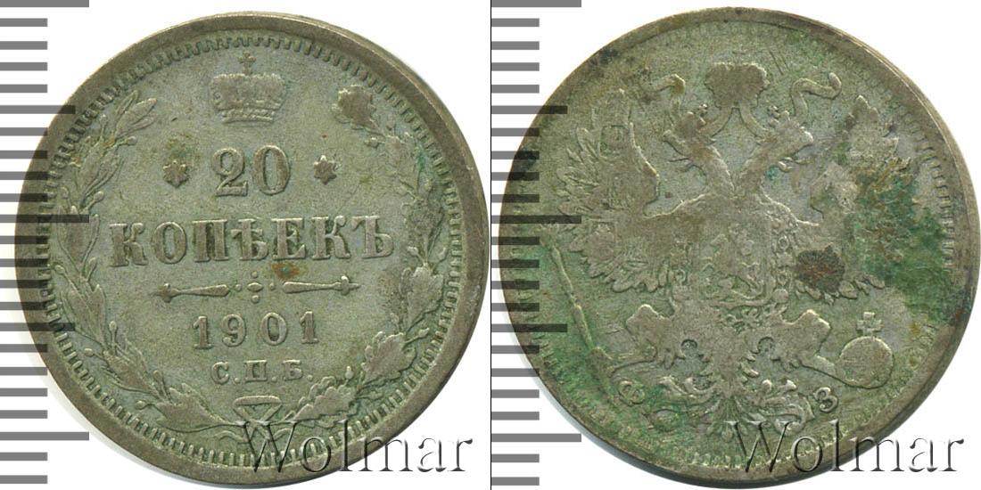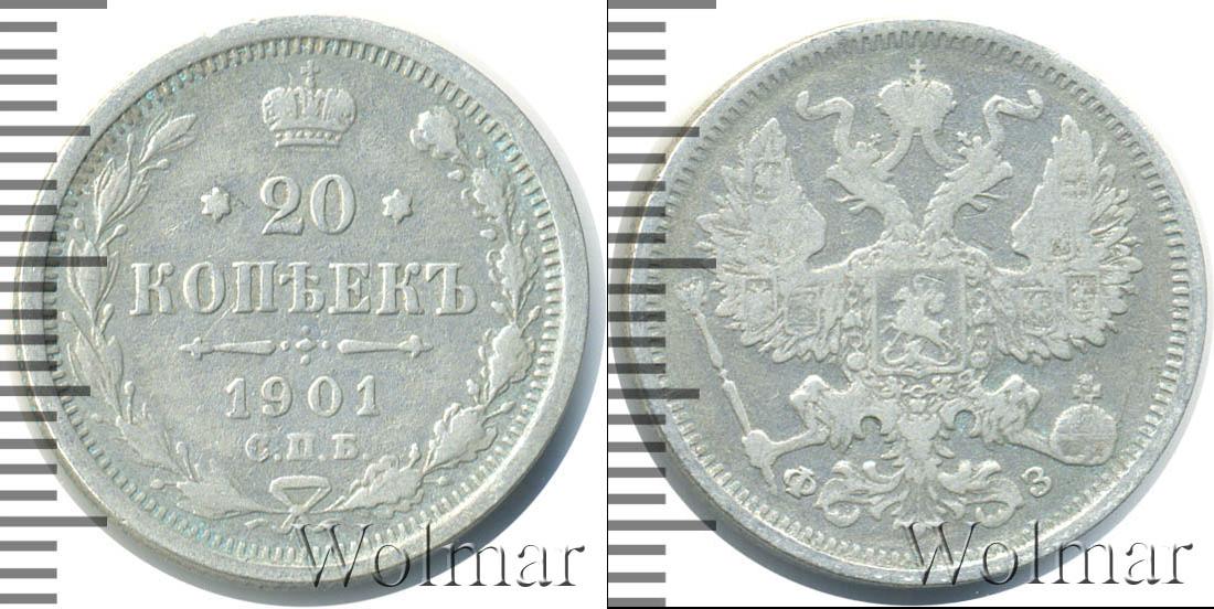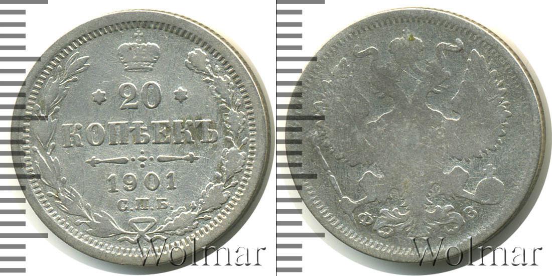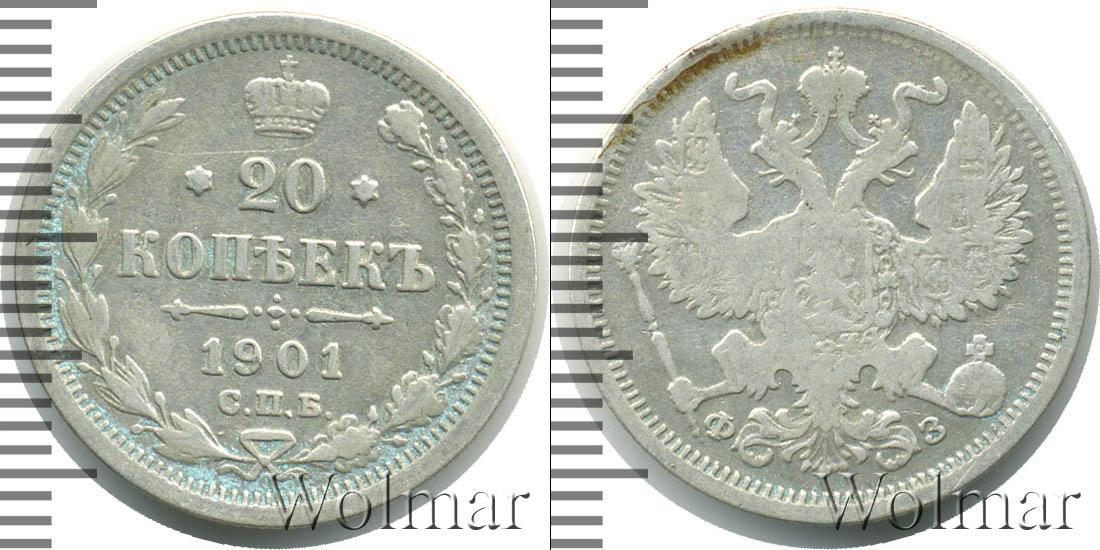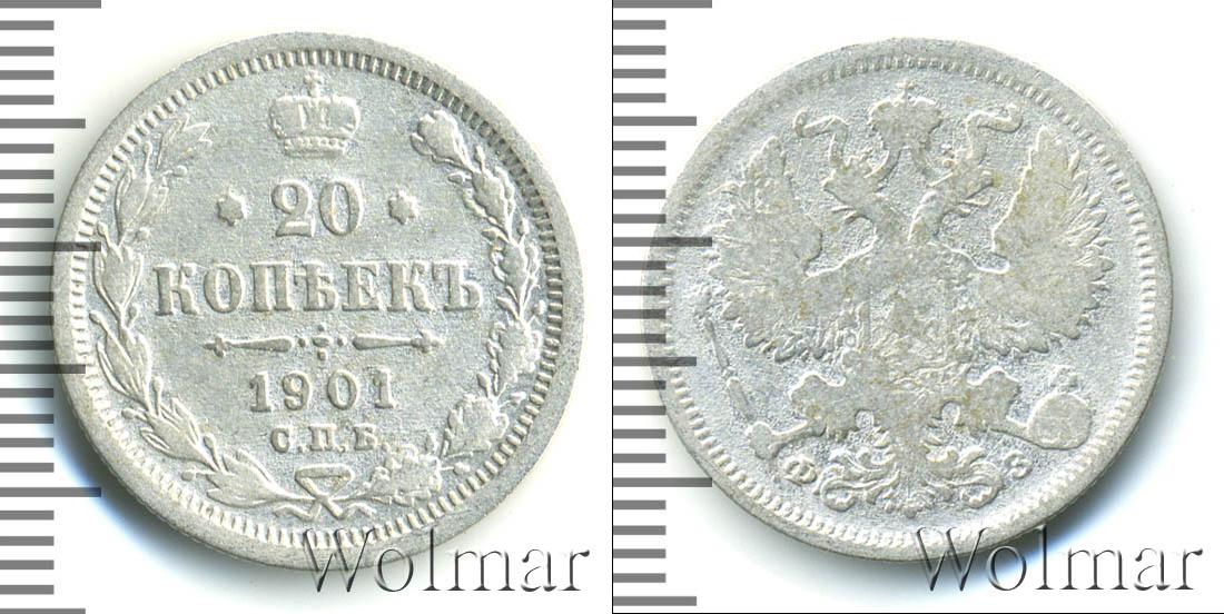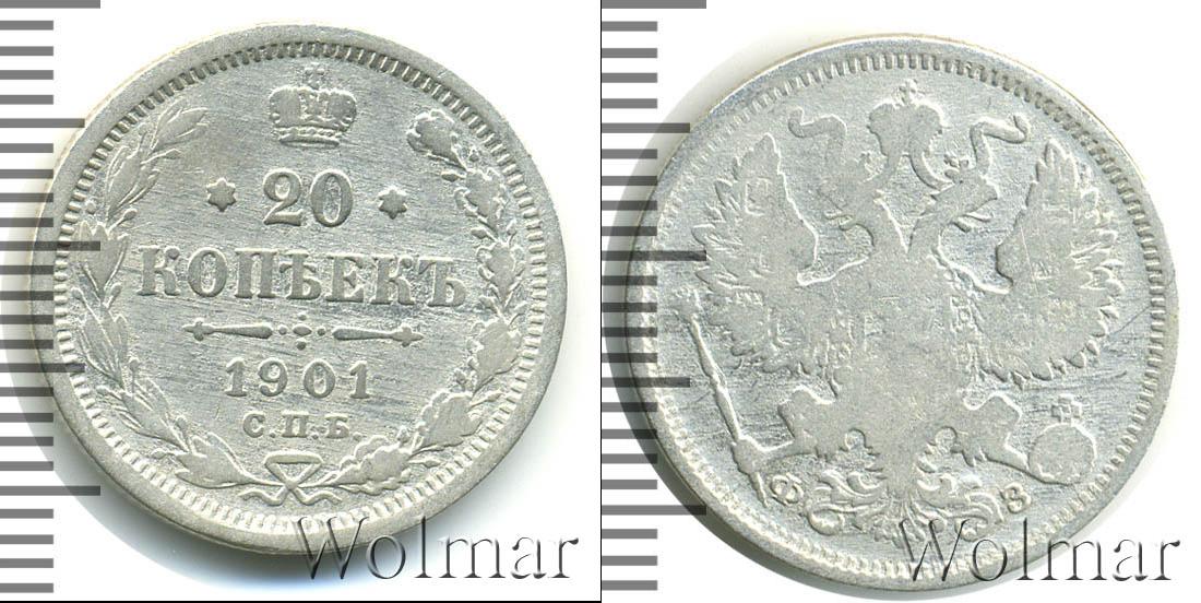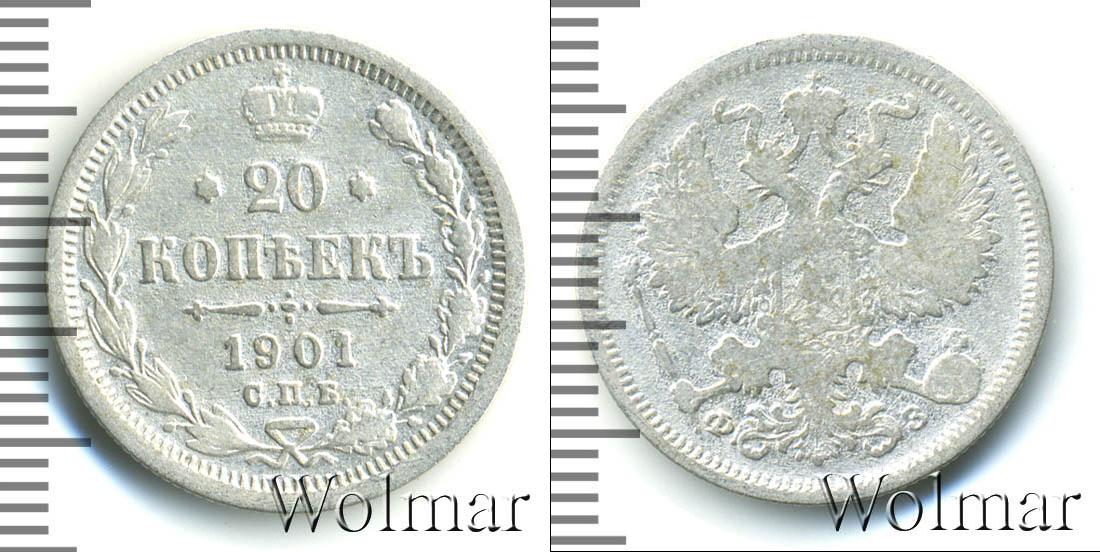 Цена монеты 20 копеек 1901 года в городе Москва на сегодня, 14 марта 2026 года