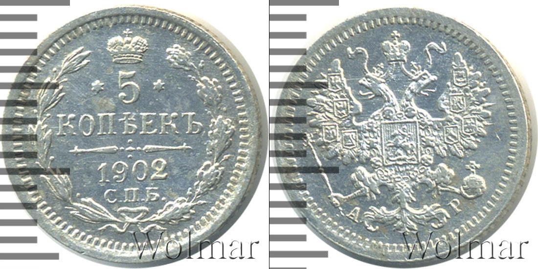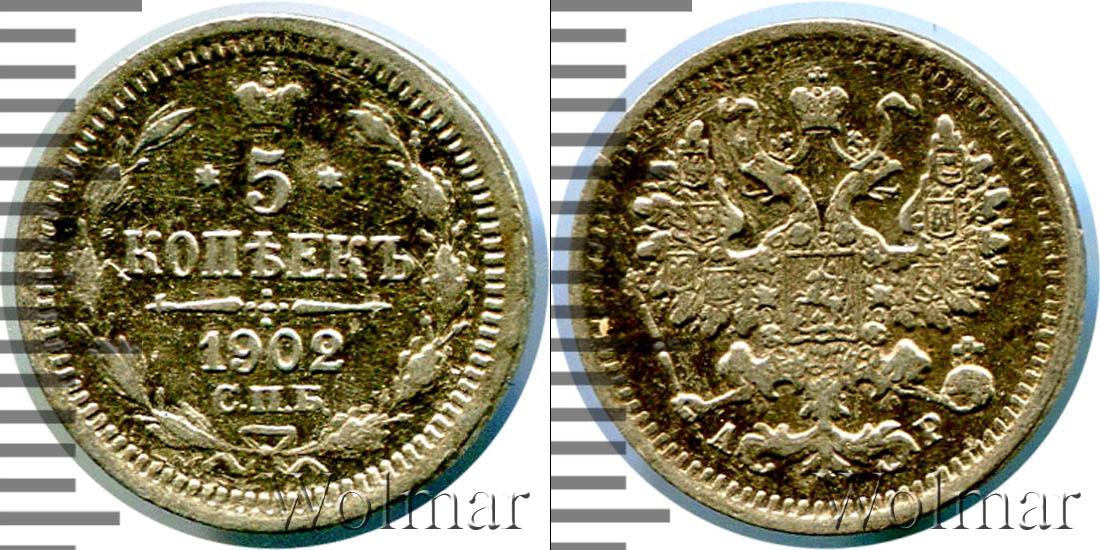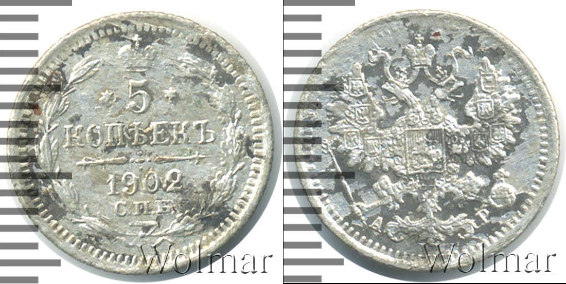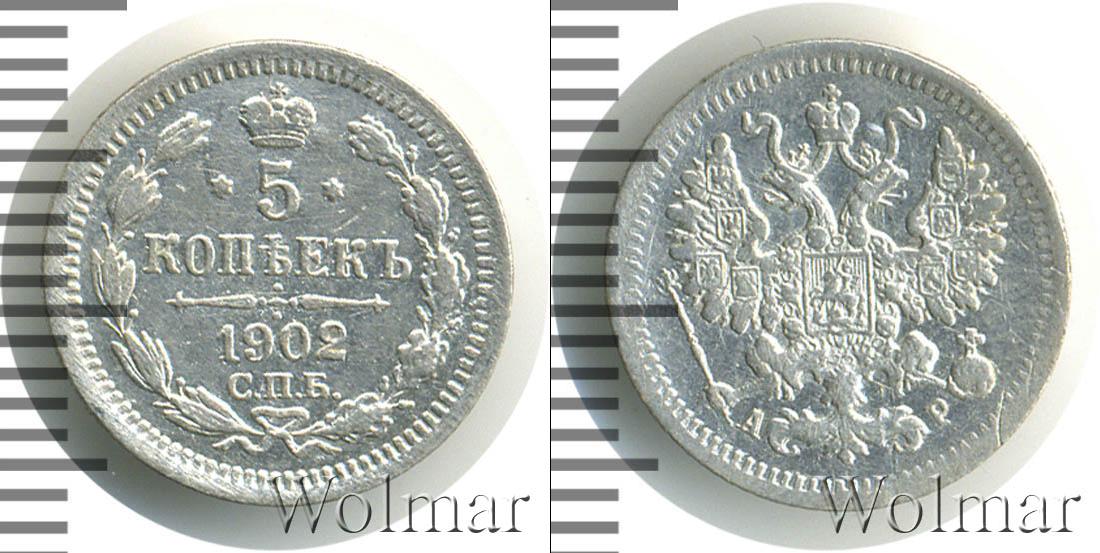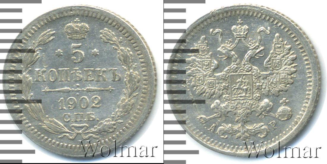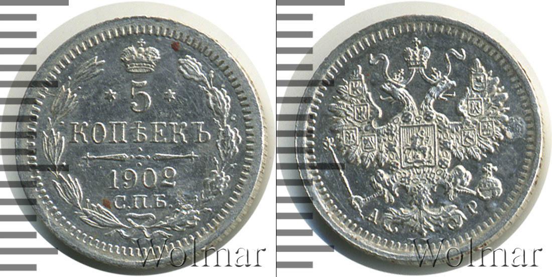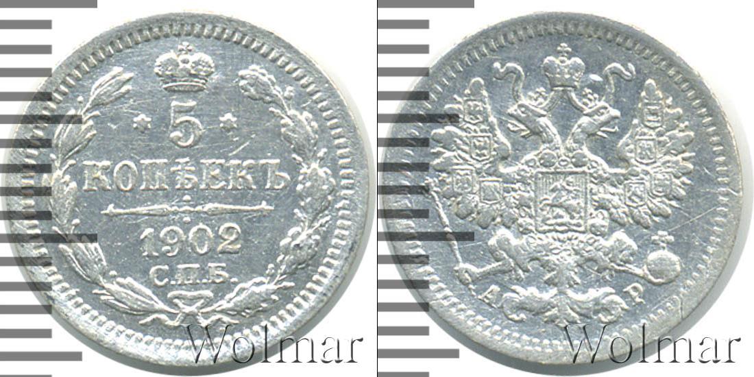 Санкт-Петербургский монетный двор. Биткин №# 942.178-179, тираж 6 000 009, Узденников №# 2136, Казаков №# 258-259, (вариант короны 1901 или 1903), рейтинг 15-14. По каталогу Wolmar # 147/52. 5 копеек СПБ АР
