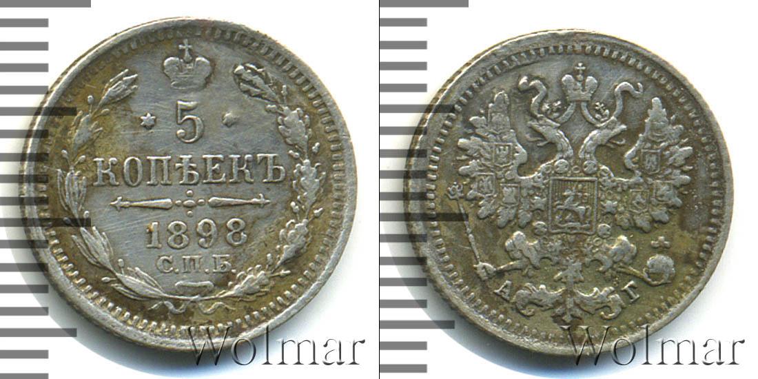Цена монеты 5 копеек 1898 года в городе Москва на сегодня, 27 октября 2025 года