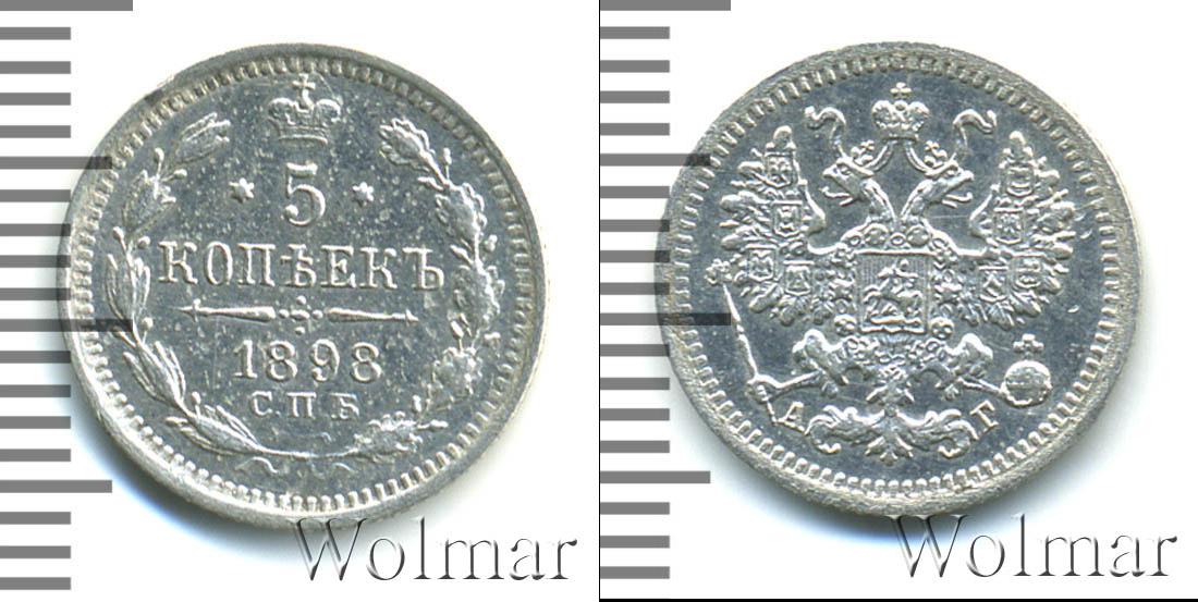 Цена монеты 5 копеек 1898 года в городе Москва на сегодня, 13 марта 2026 года