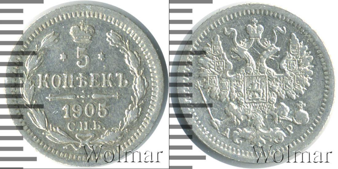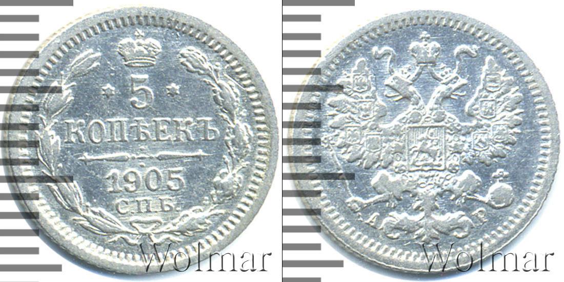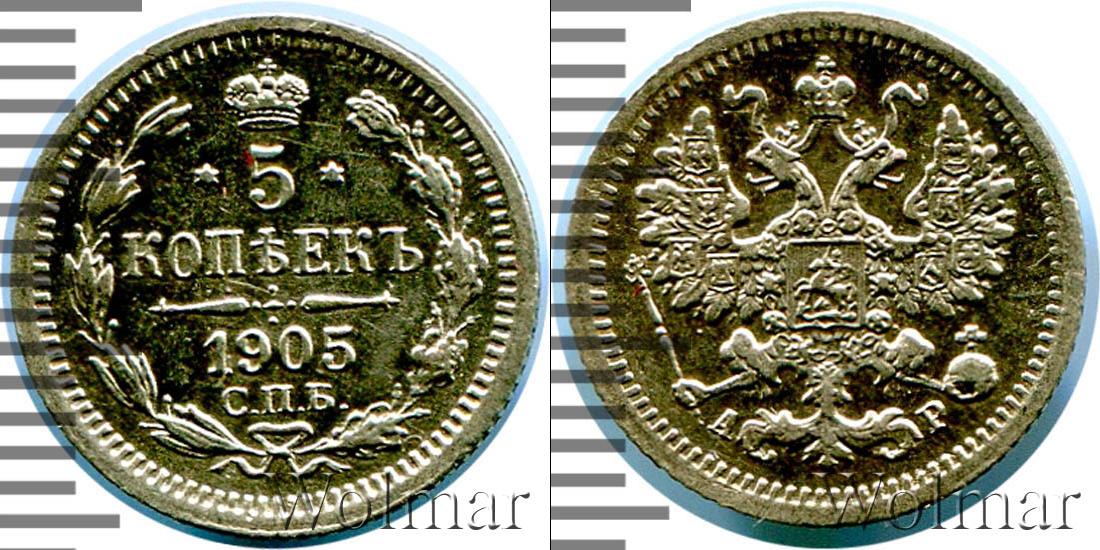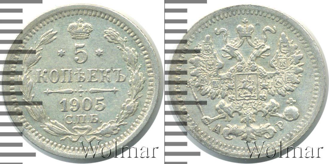 Чеканный блеск. Санкт-Петербургский монетный двор. Биткин №# 942.182, тираж 10 000 000, Узденников №# 2153, Казаков №# 299, рейтинг 26. По каталогу Wolmar # 147/55. 5 копеек СПБ АР