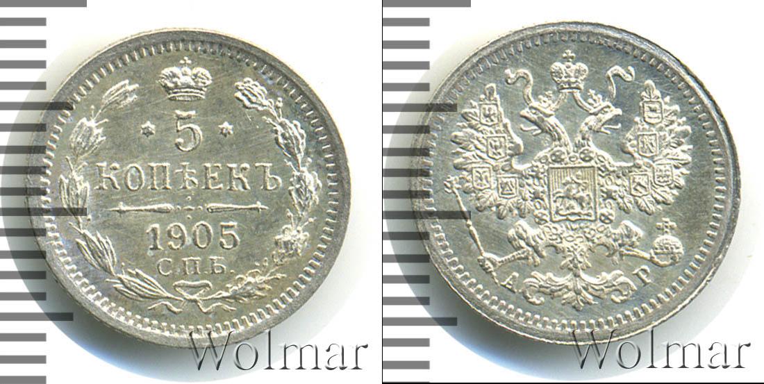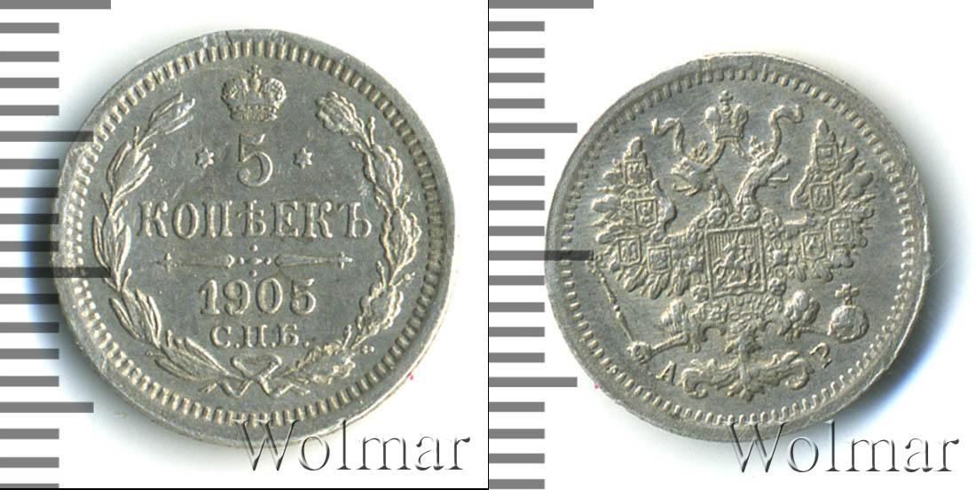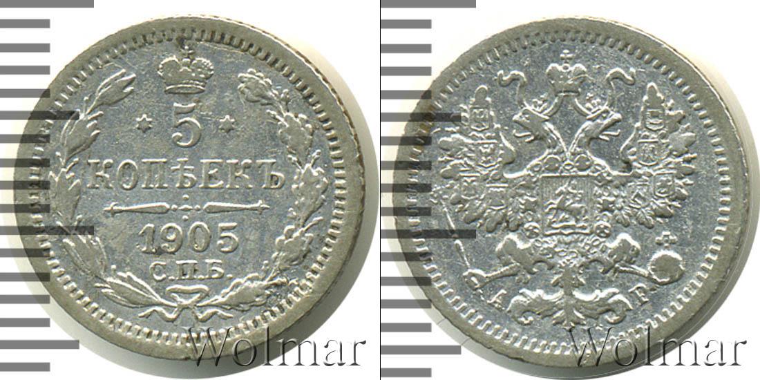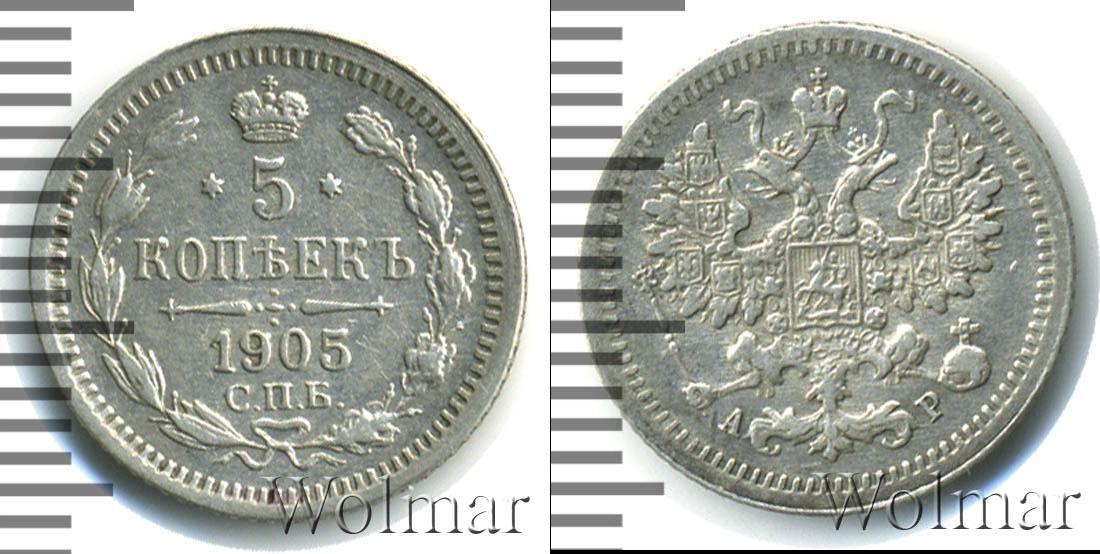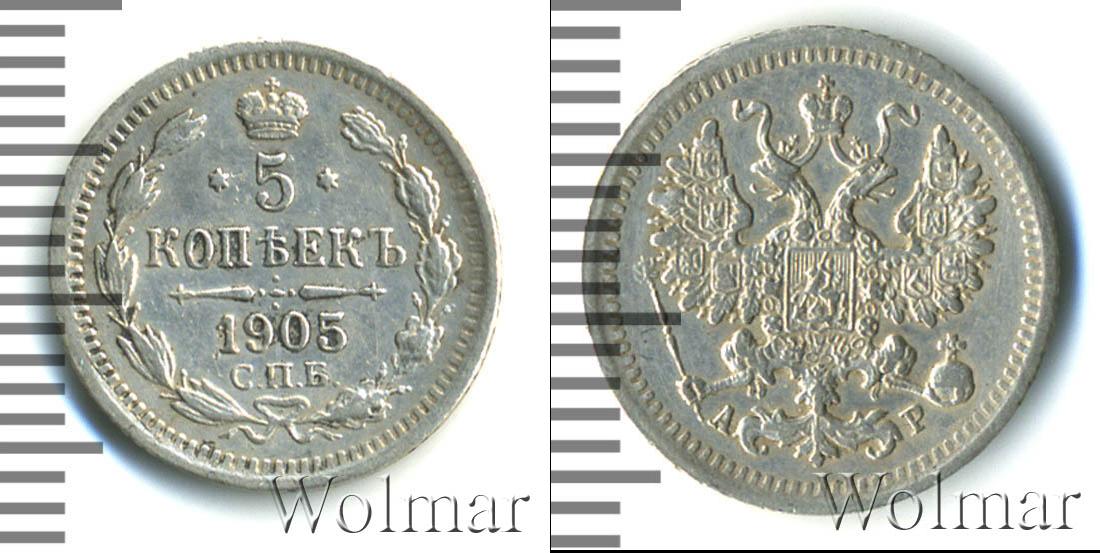 Цена монеты 5 копеек 1905 года в городе Москва на сегодня, 13 марта 2026 года