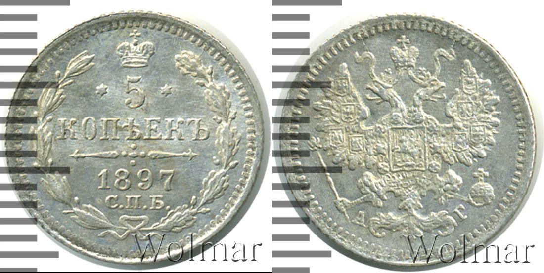 Санкт-Петербургский монетный двор. Биткин №# 942.171, тираж 4 020 009, Узденников №# 2086. По каталогу Wolmar # 147/45. 5 копеек СПБ АГ