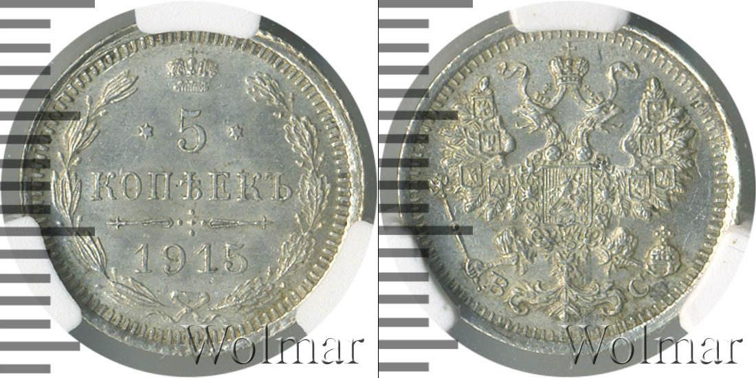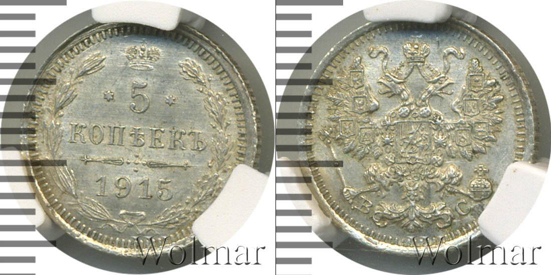 В слабе CPRC. Царапины. Санкт-Петербургский монетный двор. Биткин №# 942.192, тираж 3 000 000, Узденников №# 2218, Казаков №# 483, рейтинг 23. По каталогу Wolmar # 147/65. 5 копеек ВС