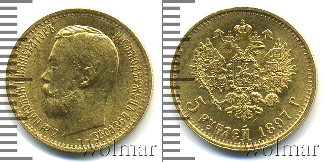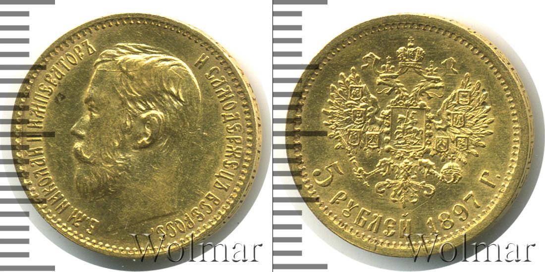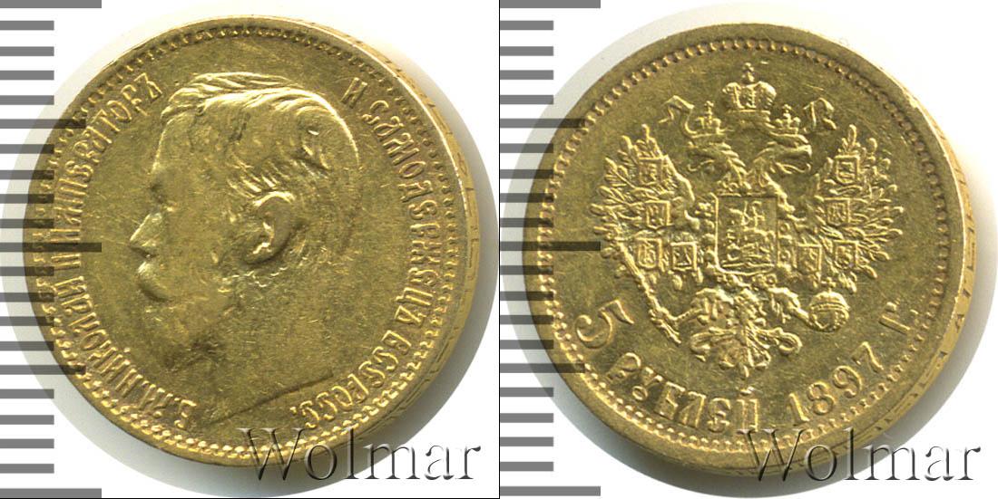Забоины на поле. Санкт-Петербургский монетный двор. Биткин №# 935.18, тираж 5 372 000; Уздеников №# 0326. Нормативная проба - Au`900, нормативный вес - 4,30 гр, чистого золота - 3,87гр. По каталогу Wolmar # 20/1-2. 5 рублей АГ