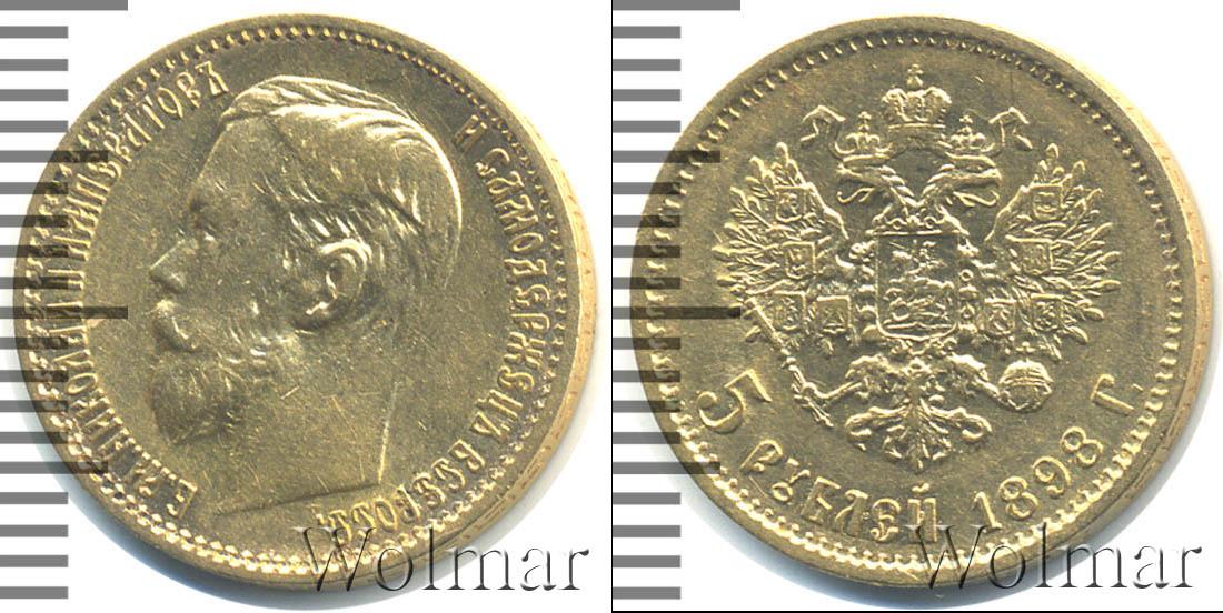 Удар по канту на 3 часа. Санкт-Петербургский монетный двор. Биткин №# 935.20, тираж 52 378 008; Уздеников №# 0329. Нормативная проба - Au`900, нормативный вес - 4,30 гр, чистого золота - 3,87гр. По каталогу Wolmar # 20/4-5. 5 рублей АГ