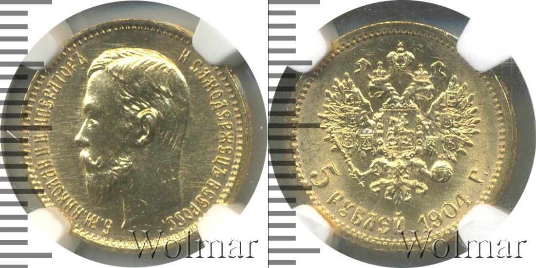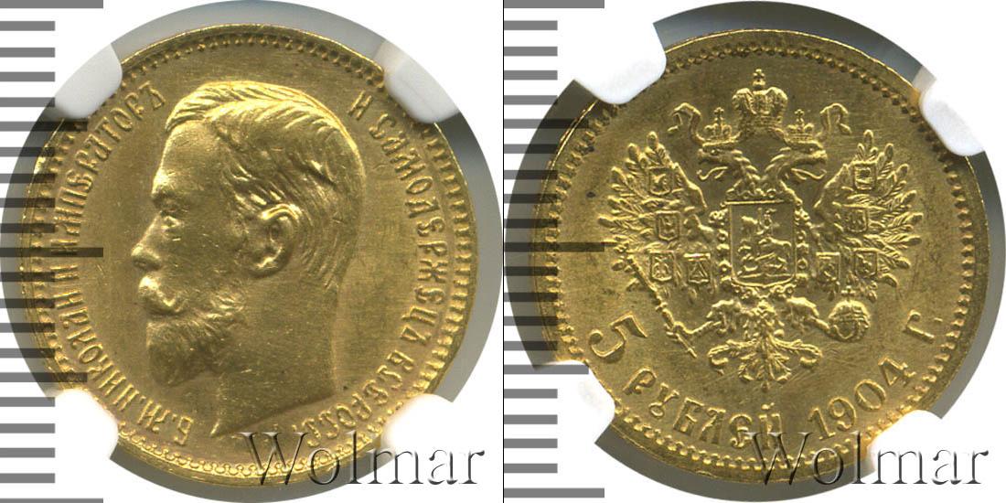 В слабе NGC. Санкт-Петербургский монетный двор. Биткин №# 935.31, тираж 2 016 010; Уздеников №# 0349, Казаков №# 282, рейтинг 20. Нормативная проба - Au`900, нормативный вес - 4,30 гр, чистого золота - 3,87гр. По каталогу Wolmar # 20/18. 5 рублей АР
