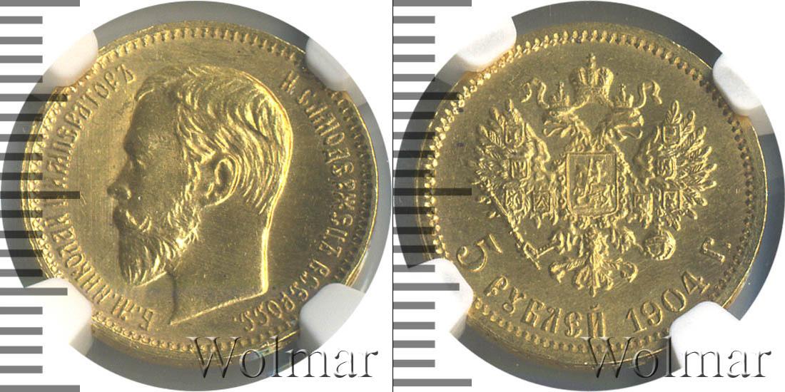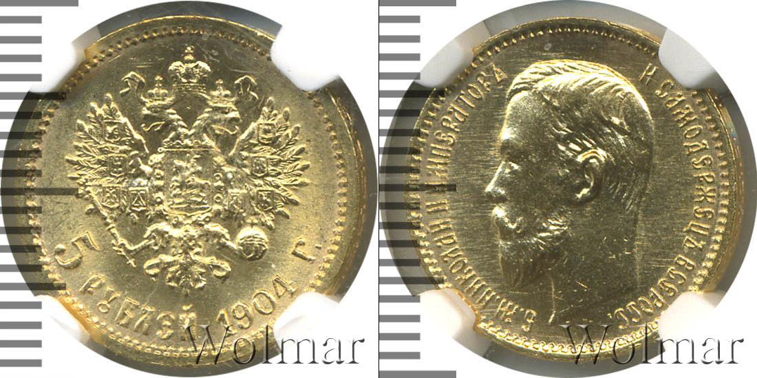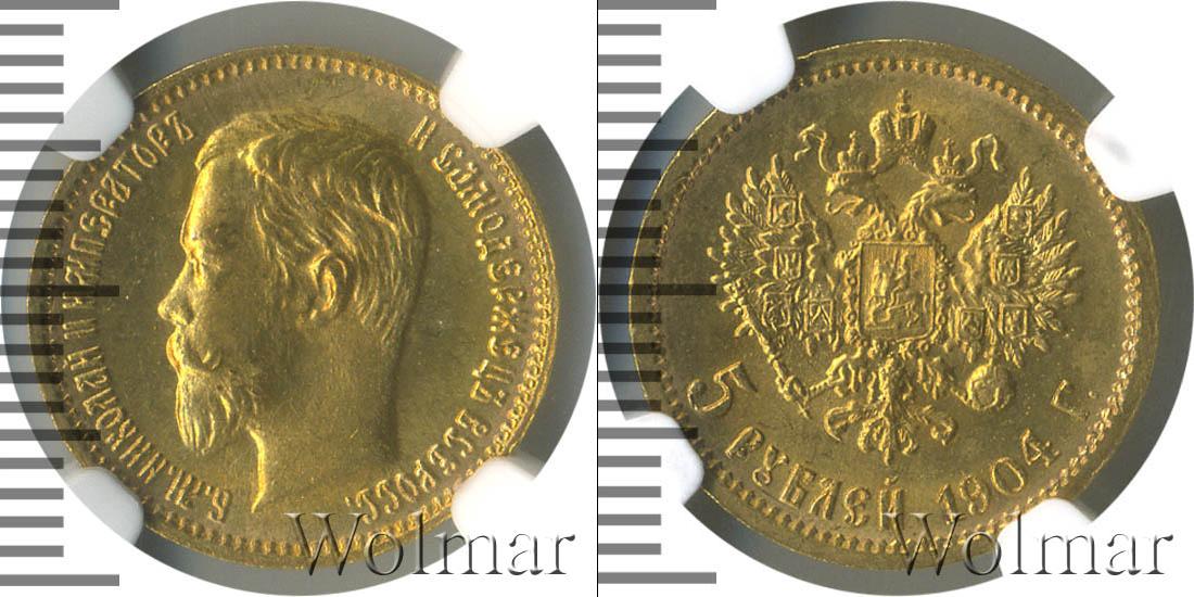 В слабе NGC. Санкт-Петербургский монетный двор. Биткин №# 935.31, тираж 2 016 010; Уздеников №# 0349/ Казаков №# 282, рейтинг 20. Нормативная проба - Au`900, нормативный вес - 4,30 гр, чистого золота - 3,87гр. По каталогу Wolmar # 20/18. 5 рублей АР