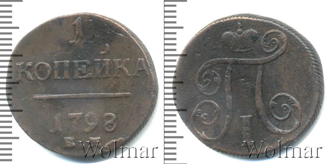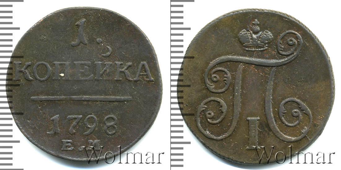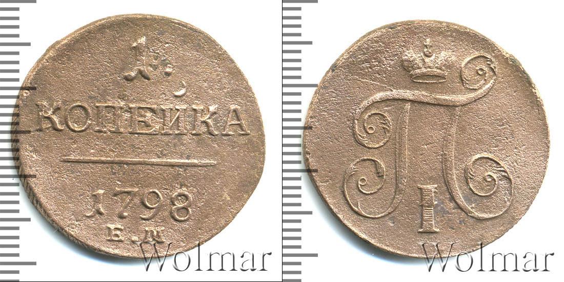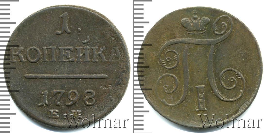 Гладкая поверхность диска разделена ровной горизонтальной линией. Над ней обозначен номинал «1 КОПЕЙКА». В нижнем полукруге есть сведения о монетном дворе и годе эмиссии. Информация «К.М.» сверху украшает надпись «1798».