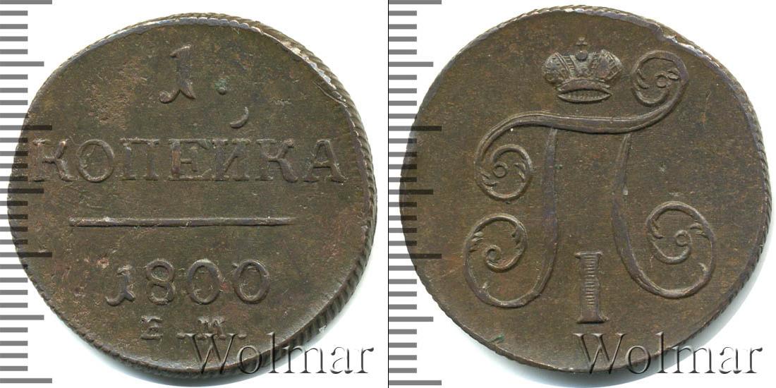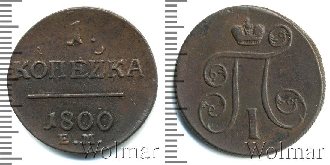 «Е.М.» указано в самом низу диска. Над товарным знаком монетного двора выгравирована информация о годе тиража. Над надписью «1800» начерчена ровная горизонтальная линия. Сверху геометрического орнамента указан номинал «1 КОПЕЙКА».