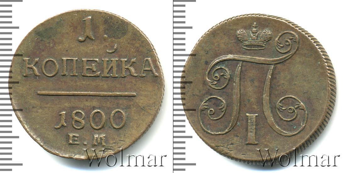 «Е.М.» указано в самом низу диска. Над товарным знаком монетного двора выгравирована информация о годе тиража. Над надписью «1800» начерчена ровная горизонтальная линия. Сверху геометрического орнамента указан номинал «1 КОПЕЙКА».