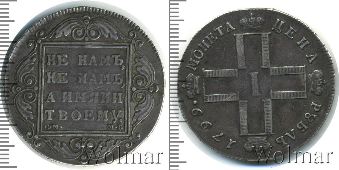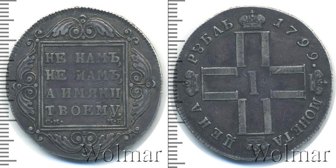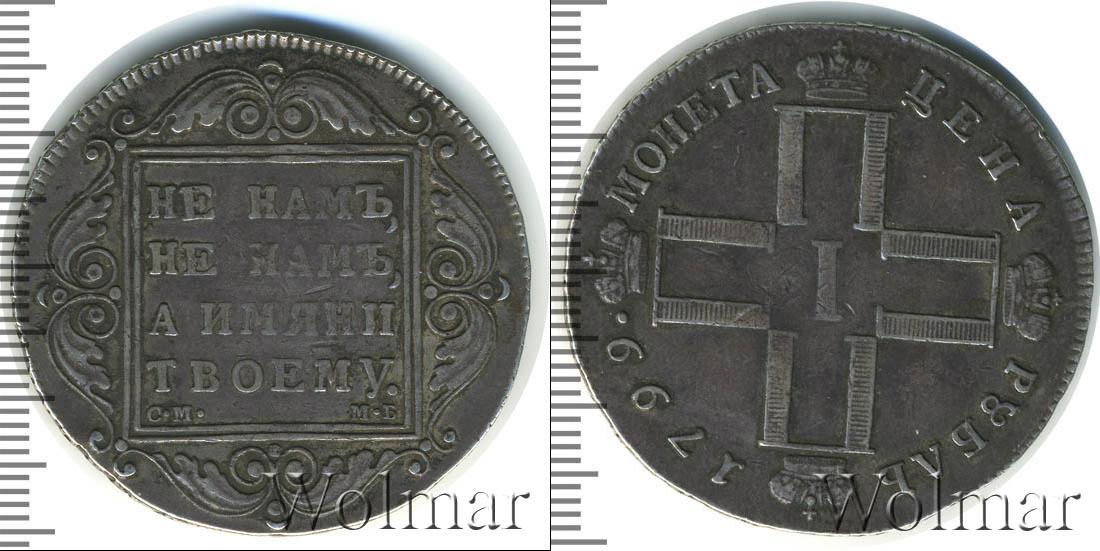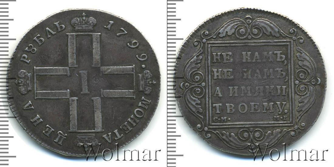 По центру диска расположены инициалы Павла Первого (четыре буквы «П», скрещенные между собой и в обрамлении императорских корон; посередине римская цифры «I»). В верхней части диска начертано: МОНЕТА ЦЕНА, а внизу отмечен номинал и год выпуска монеты – РУБЛЬ 1799.