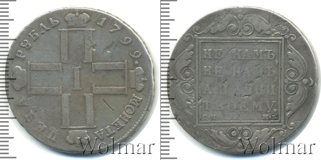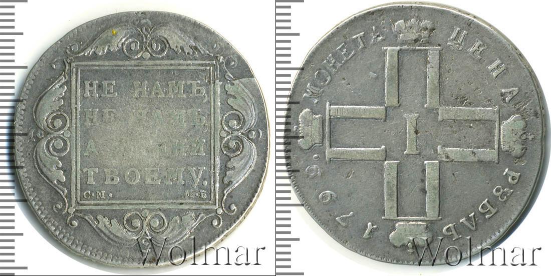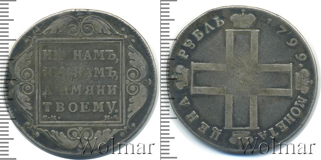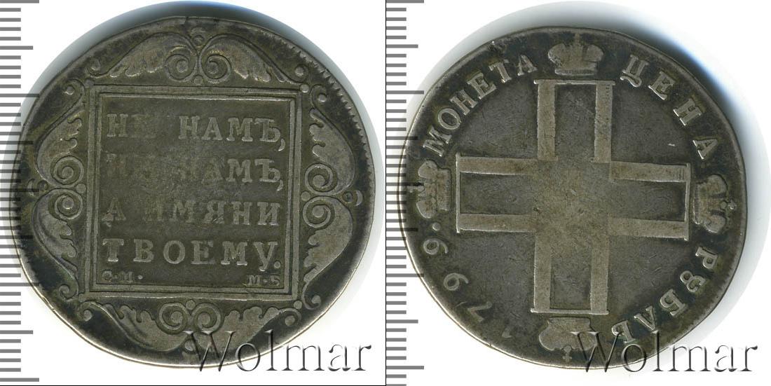 По центру диска расположены инициалы Павла Первого (четыре буквы «П», скрещенные между собой и в обрамлении императорских корон; посередине римская цифры «I»). В верхней части диска начертано: МОНЕТА ЦЕНА, а внизу отмечен номинал и год выпуска монеты – РУБЛЬ 1799.