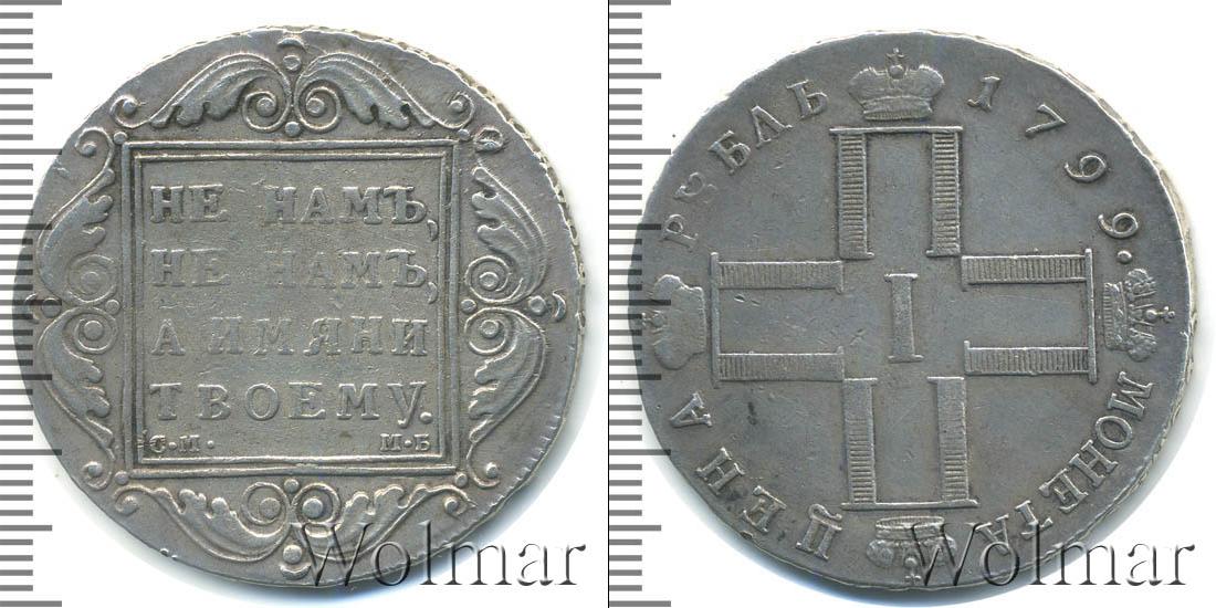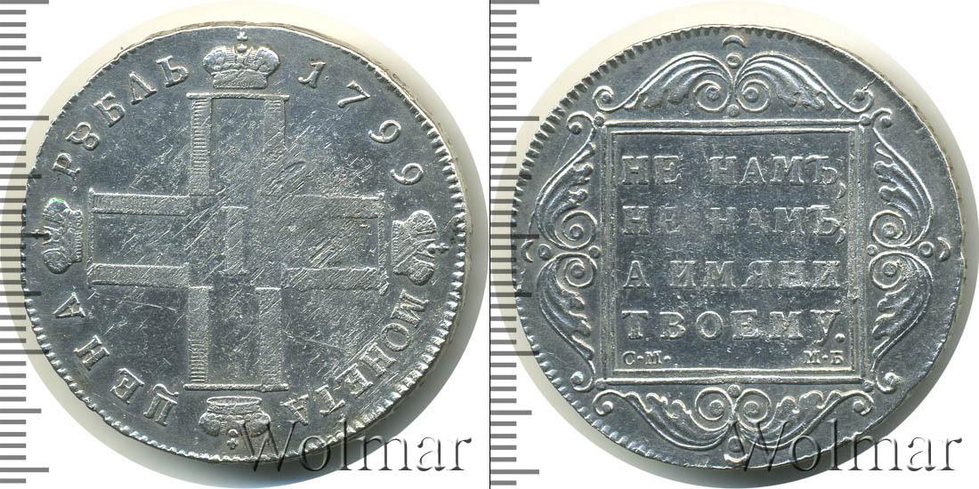 По центру диска расположены инициалы Павла Первого (четыре буквы «П», скрещенные между собой и в обрамлении императорских корон; посередине римская цифры «I»). В верхней части диска начертано: МОНЕТА ЦЕНА, а внизу отмечен номинал и год выпуска монеты – РУБЛЬ 1799.