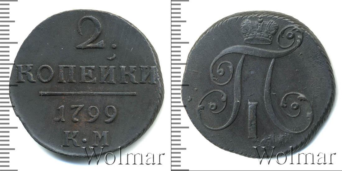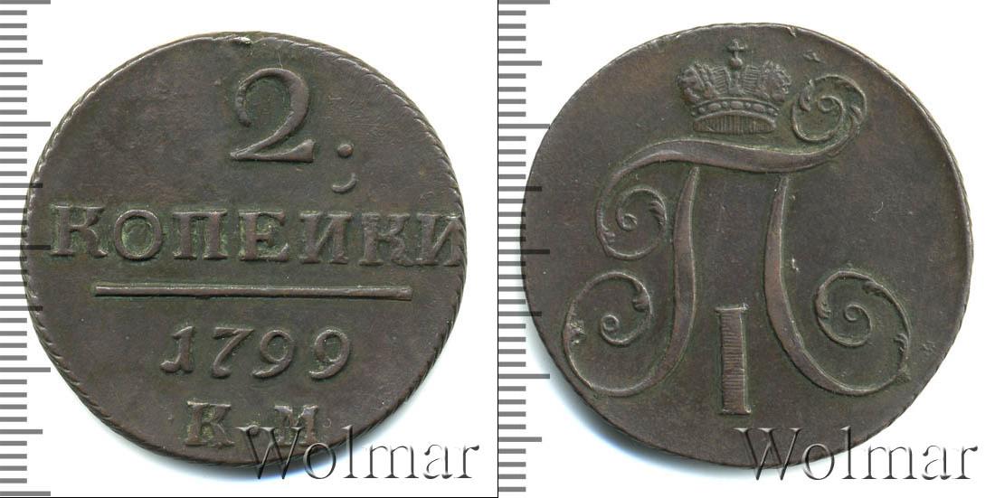 Вверху диска написана цифра «2». Под количественным обозначением номинала выгравирована валюта «КОПЕЙКИ». Сведения подчеркнуты прямой линией, ниже которой указан год эмиссии «1799» и товарный знак монетного двора «К.М.»