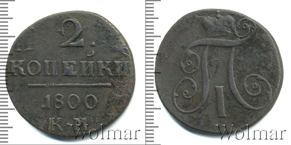 Номинал выгравирован в верхнем полукруге. «2 КОПЕЙКИ» отделяет от года выпуска ровная прямая линия. Ниже надписи «1800» указаны данные о товарном знаке монетного двора в Екатеринбурге «Е. М.»