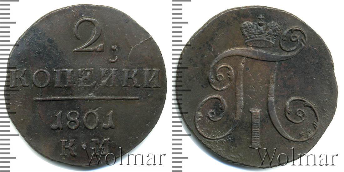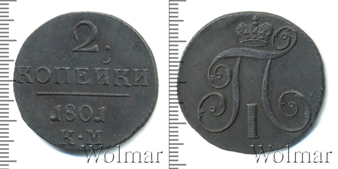 Гладкая поверхность диска разделена на два полукруга: в верхнем указан номинал, нижнем – год тиража и товарный знак монетного двора. Под надписью «2 КОПЕЙКИ» подведена ровная линия, которая и отделяет гравировку «1801 / Е.М.».