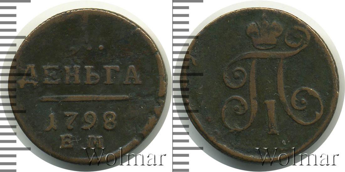 Сведения о тираже указаны горизонтальными надписями друг под другом. Данные «1 ДЕНЬГА» и «1798» украшены геометрическим орнаментом. Помимо номинала и года тиража на обороте указан товарный знак монетного двора «А.М.».