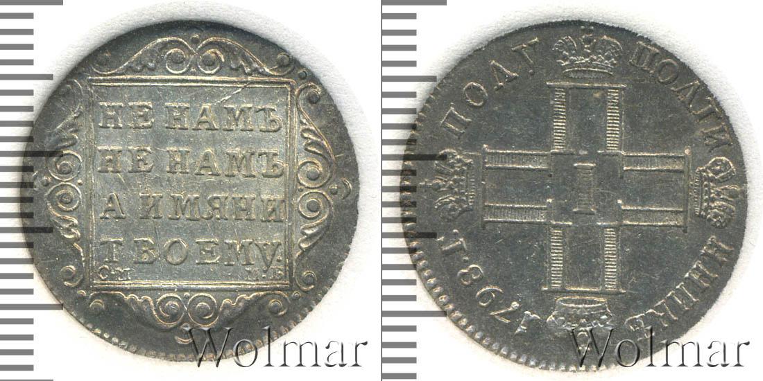 Масса готового изделия составляет 5,18 г., а диаметр равен 23 мм. В центральной части диска – скрещенные буквы «П» в обрамлении корон и с римской цифрой один в центре. Вверху и справа начертано: ПОЛУПОЛТИННИК, а внизу слева дата эмиссии – 1798.