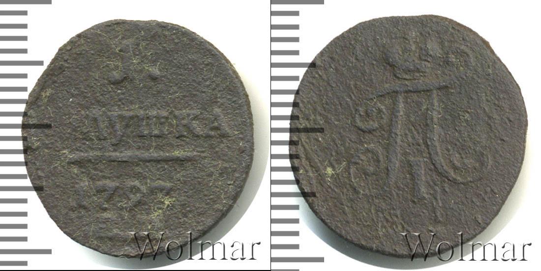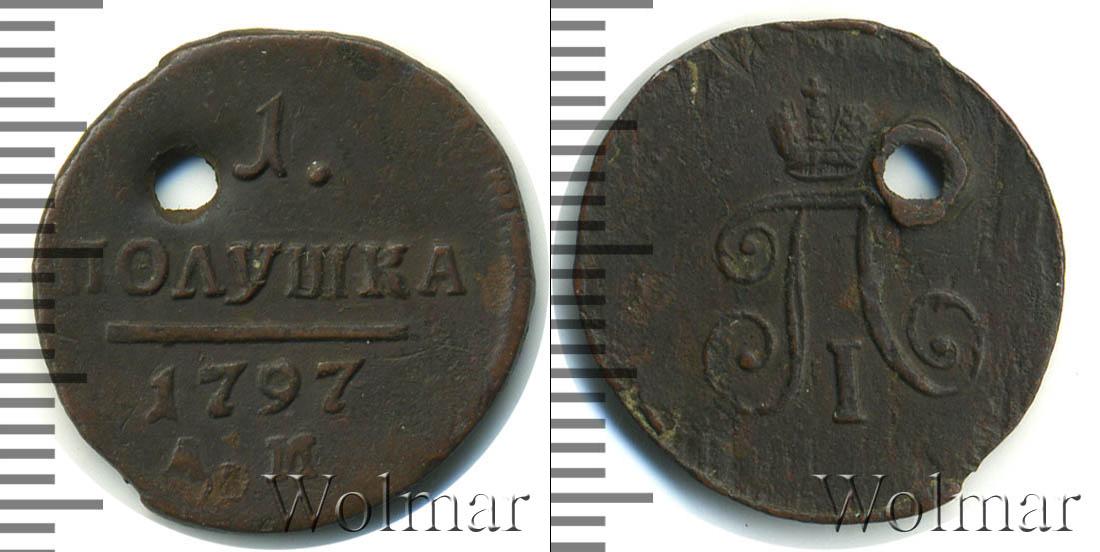 В основу композиции легли данные об эмиссии. Надписи сделаны друг под другом в горизонтальной проекции. Номинал разделен на две строчки: «1» «ПОЛУШКА». Ниже выгравирован год выпуска «1797». Еще ниже – сведения о монетном дворе.
