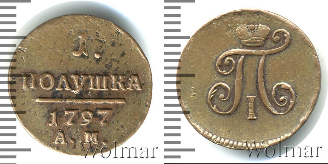В основу композиции легли данные об эмиссии. Надписи сделаны друг под другом в горизонтальной проекции. Номинал разделен на две строчки: «1» «ПОЛУШКА». Ниже выгравирован год выпуска «1797». Еще ниже – сведения о монетном дворе.