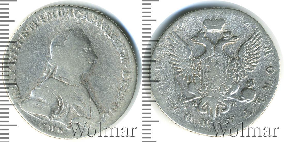 Представлена гербовая эмблема России. Под ним указаны инициалы минцмейстера «НК». Вверху дата эмиссии монеты «1762». По краю диска слева выгравировано «ПОЛТИНА», а справа – «МОНЕТА». Вдоль канта – зубчатый ободок.
