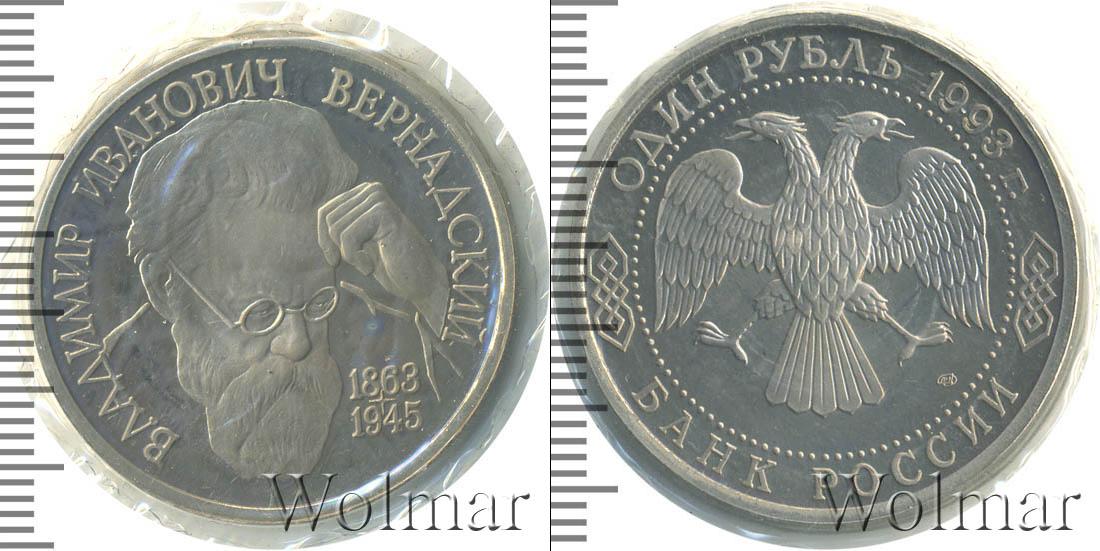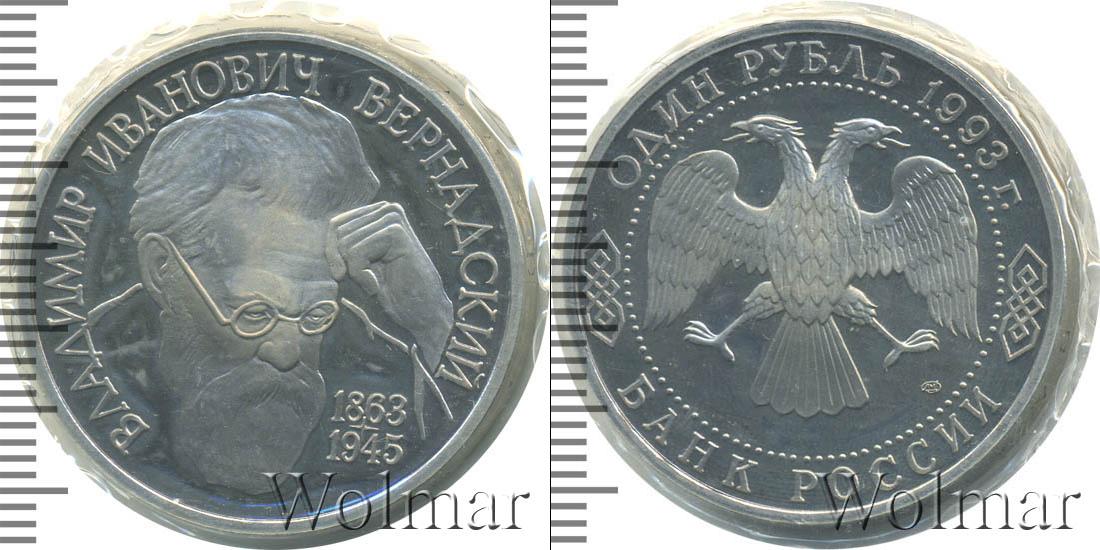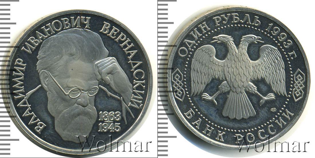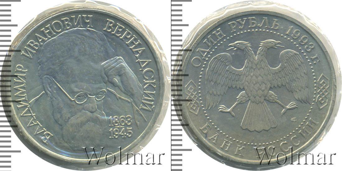 В запайке. Портрет В.И. Вернадского. Владимир Иванович Вернадский (1863 - 1945) - академик, создатель учения о биосфере, основатель геохимии, биогеохимии, радиогеологии. 1 рубль. 130-летие со дня рождения В.И.Вернадского ЛМД