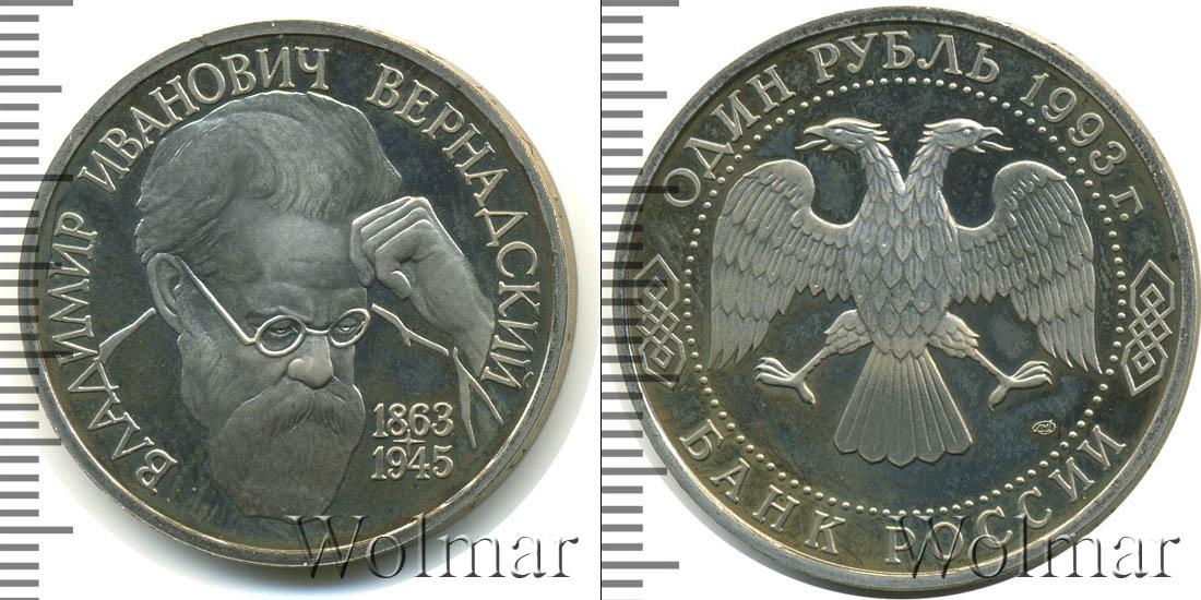 Портрет В.И. Вернадского. Владимир Иванович Вернадский (1863 - 1945) - академик, создатель учения о биосфере, основатель геохимии, биогеохимии, радиогеологии 1 рубль. 130-летие со дня рождения В.И.Вернадского ЛМД